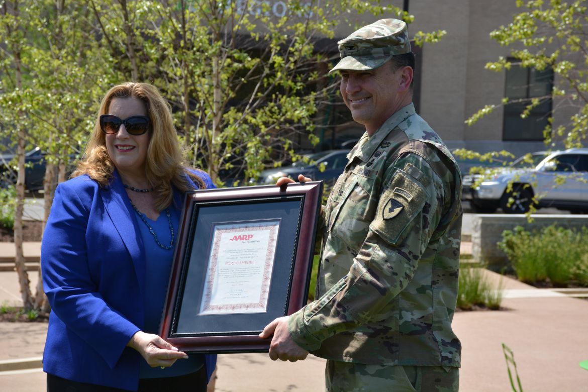 AARP Tennessee Director Rebecca Kelly presented Montgomery County Mayor Jim Durrett and Clarksville Mayor Joe Pitts with certificates officially welcoming the Clarksville-Montgomery County community into the AARP Network. Col. Joseph Kuchan, Fort Campbell Garrison Commander, was recognized for the post’s willingness to support the community’s age-friendly efforts.