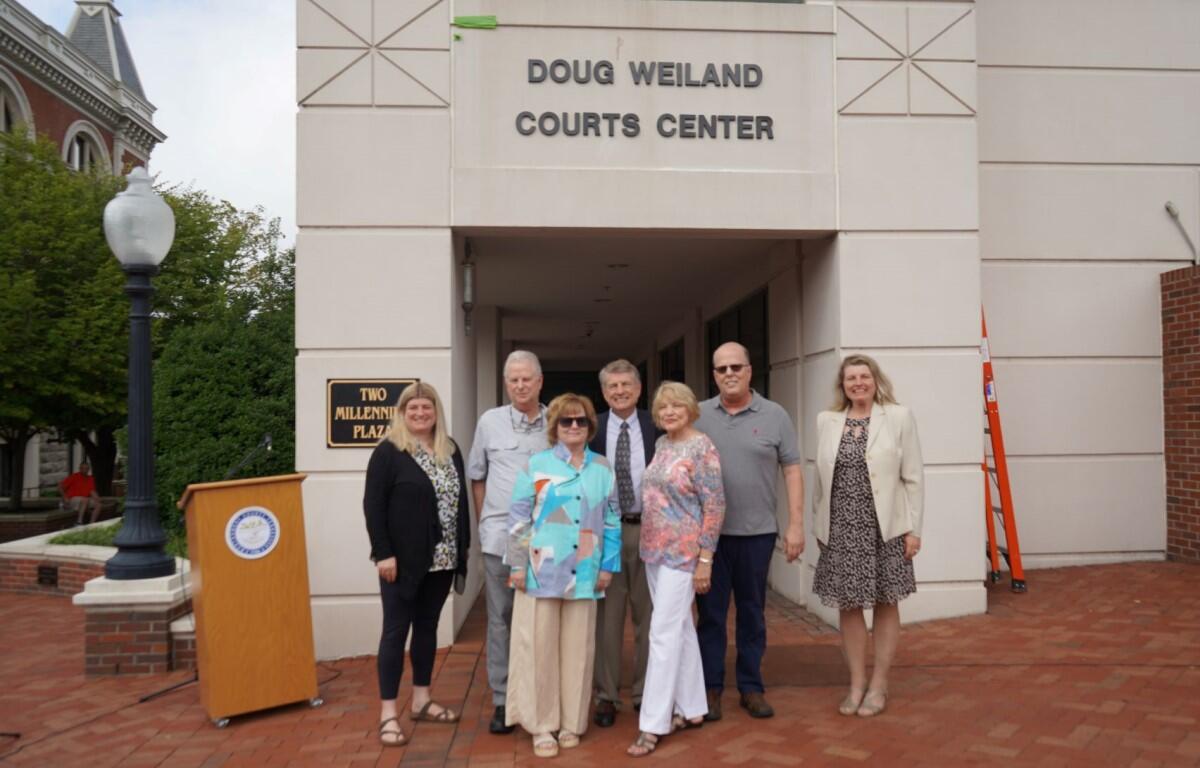 CLARKSVILLE, TN – The Montgomery County Courts Center was assigned with a new name this week to honor former Montgomery County Mayor Doug Weiland. The signage unveiling ceremony took place at 10 a.m. revealing the official name as Doug Weiland Courts Center.