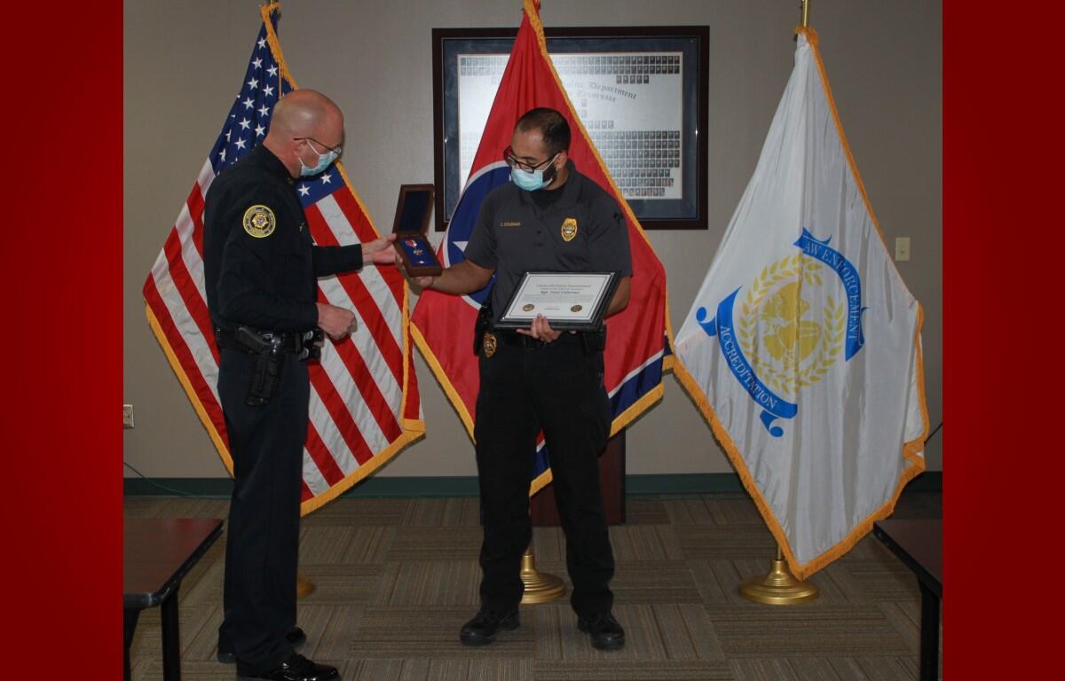 CLARKSVILLE, Tenn. – Clarksville Police Department’s Sgt. Cory Coleman was presented the Lifesaver Award by Chief David Crockarell for his actions during the early morning hours of July 5, 2020.