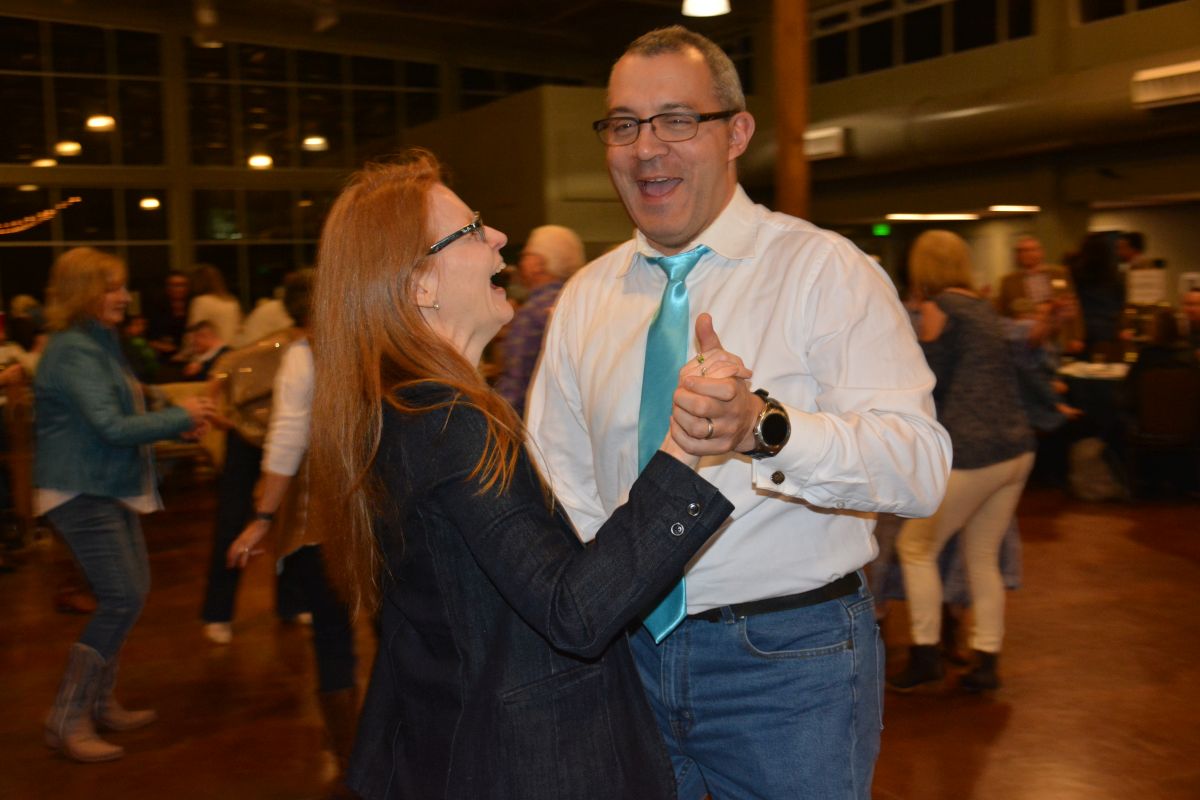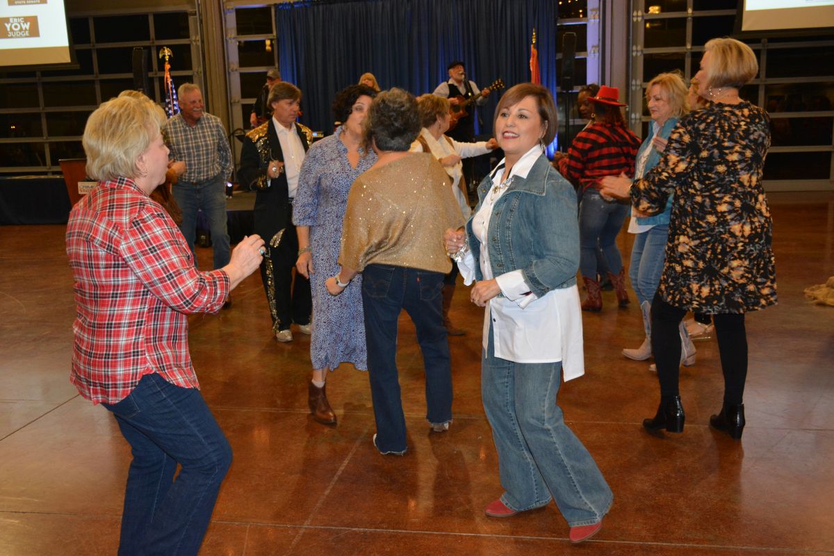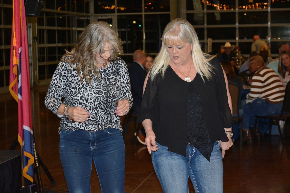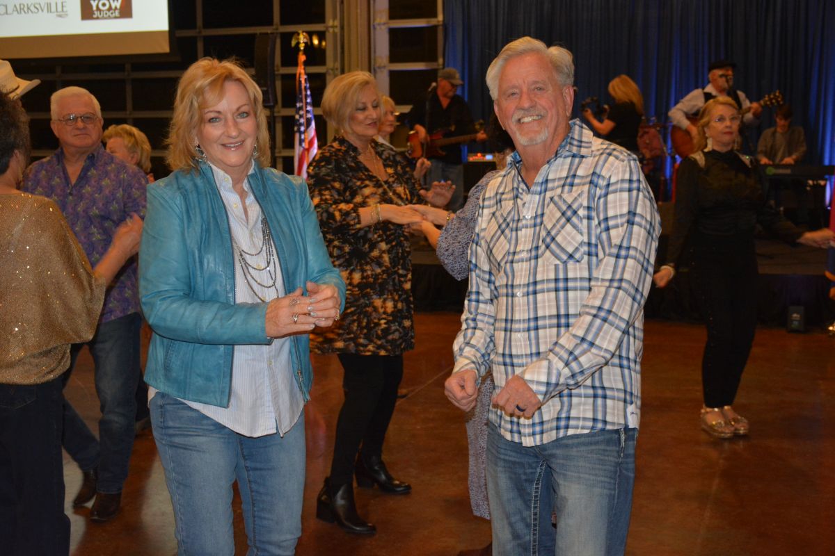 Guests dressed up in their best denim take to the dance floor at the Clarksville-Montgomery County Crime Stoppers Blue Jean Ball, on Feb. 11, 2022. (Lee Erwin)
