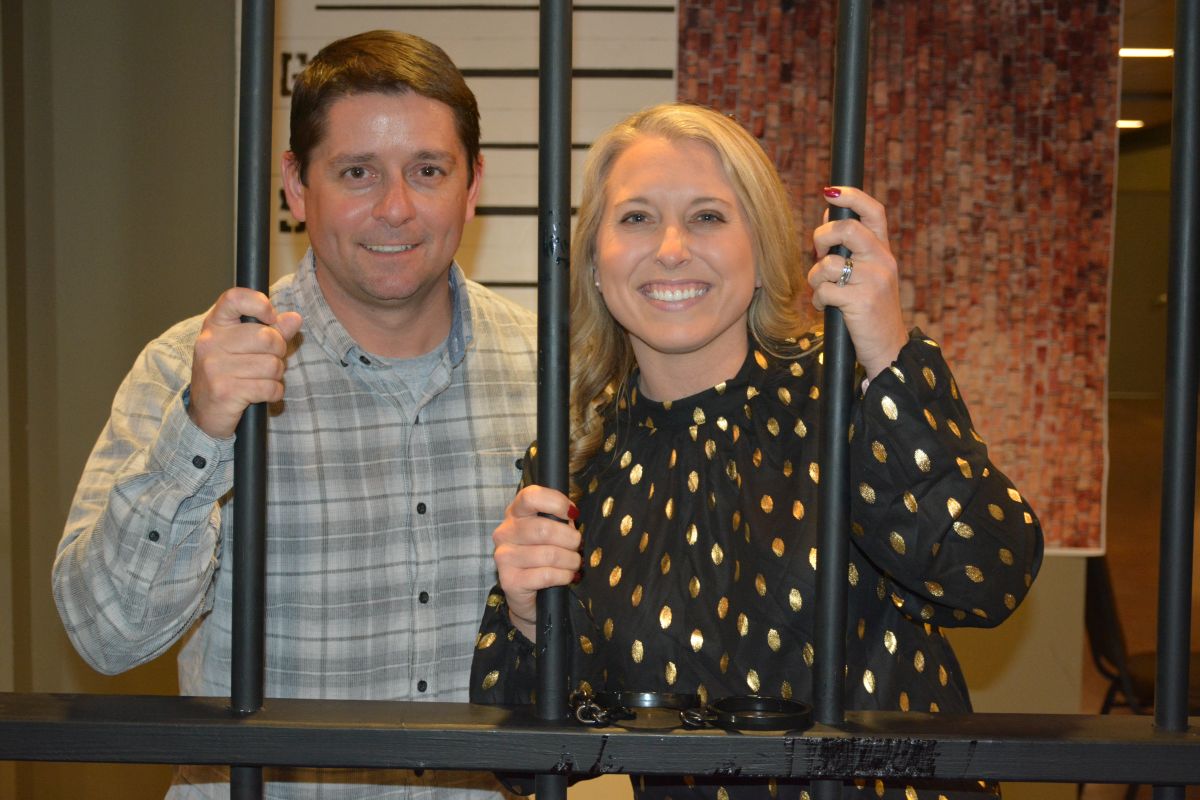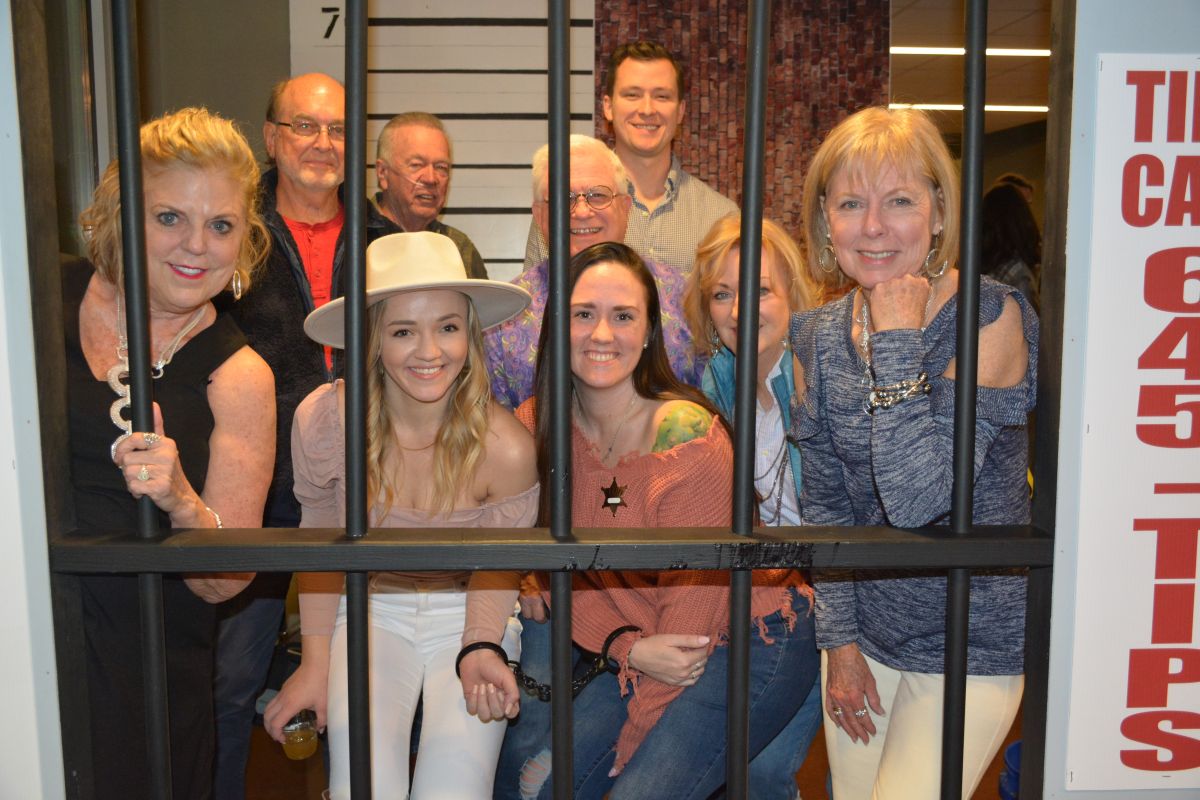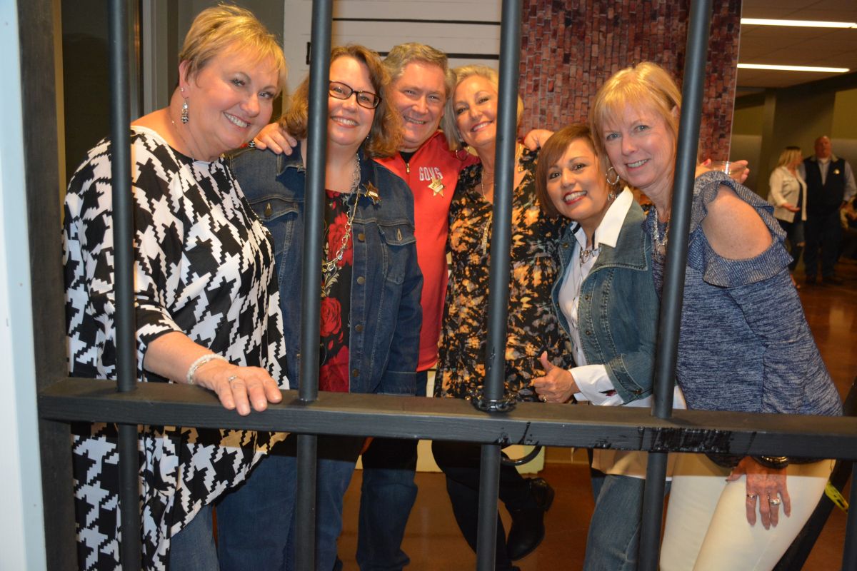 Guests dressed up in their best denim behind bars at the Clarksville-Montgomery County Crime Stoppers Blue Jean Ball, on Feb. 11, 2022. (Lee Erwin)