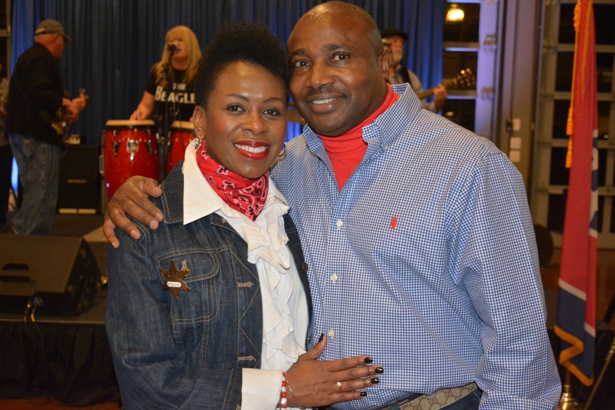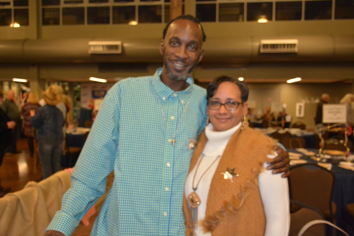 Kimberly and Oneal Wiggins are dressed up in their best denim at the Clarksville-Montgomery County Crime Stoppers Blue Jean Ball, on Feb. 11, 2022. (Lee Erwin)