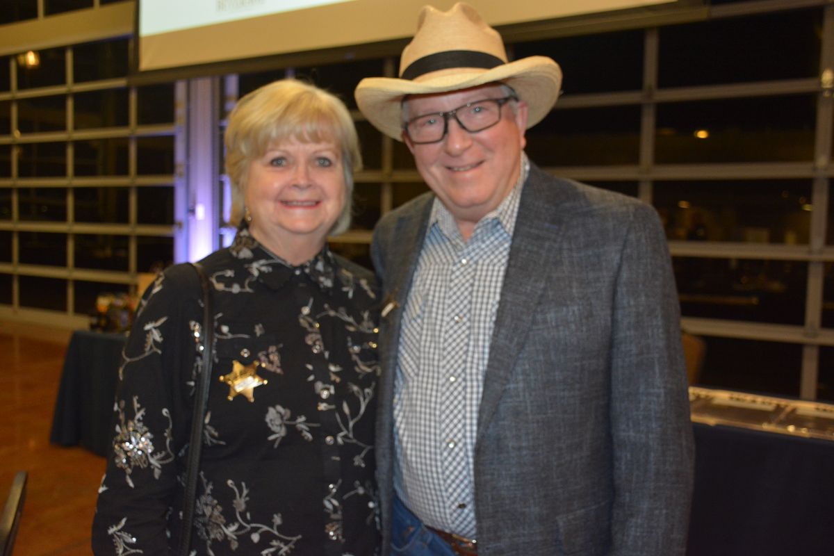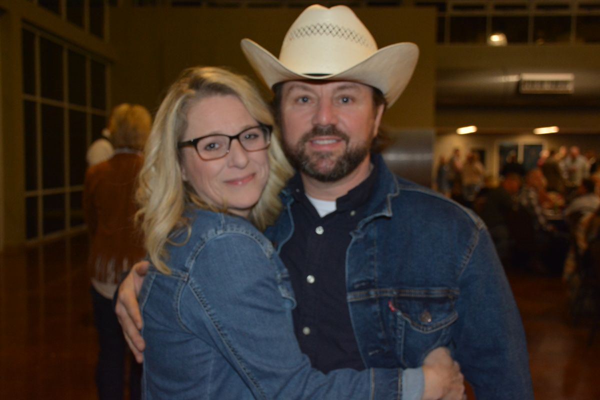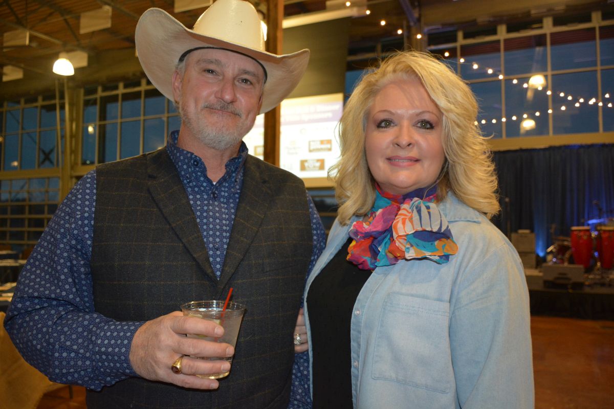 Patti Marquess and Frank Lott are dressed up in their best denim at the Clarksville-Montgomery County Crime Stoppers Blue Jean Ball, on Feb. 11, 2022. (Lee Erwin)