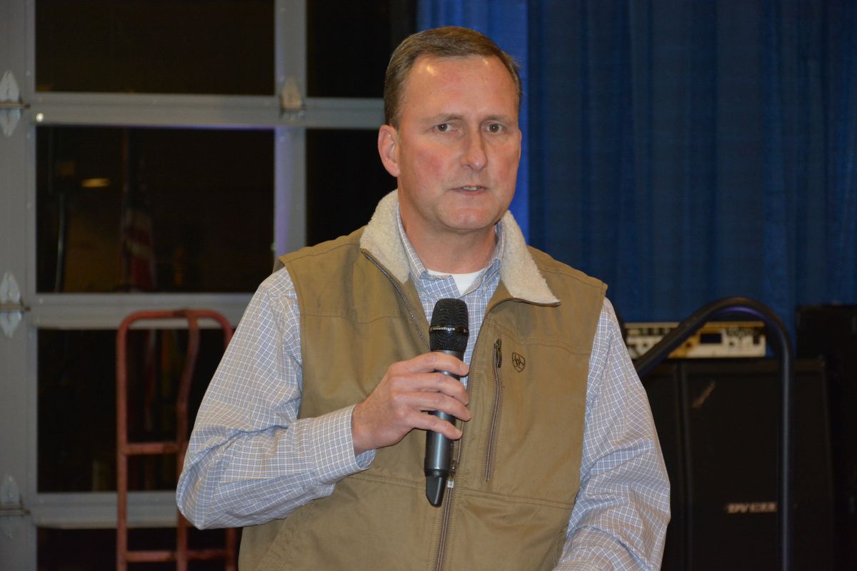 Montgomery County Sheriff John Fuson speaking at the Clarksville-Montgomery County Crime Stoppers Blue Jean Ball, on Feb. 11, 2022. (Lee Erwin)