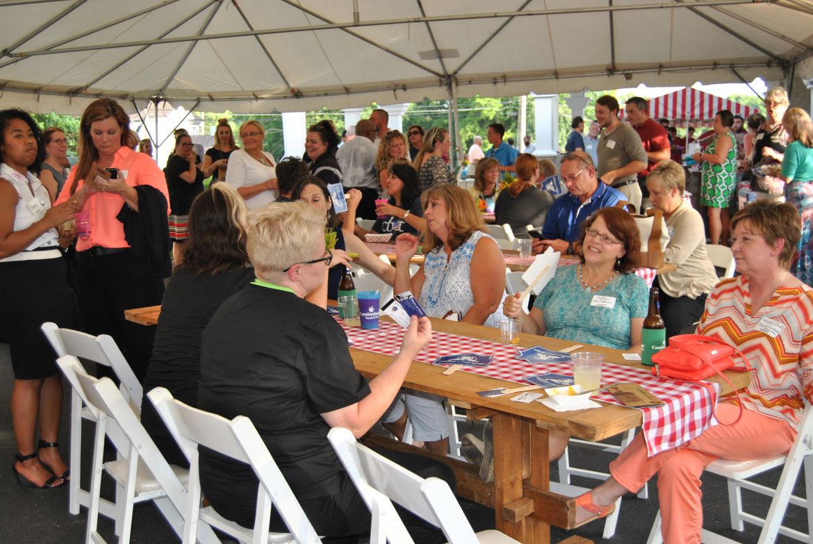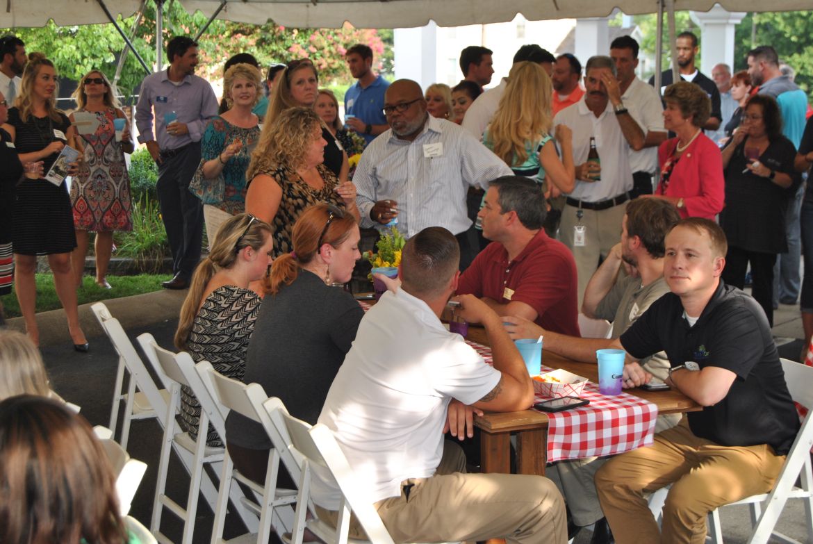 CLARKSVILLE, Tenn. (CLARKSVILLENOW) The Clarksville Area Chamber of Commerce held their Business After Hours Thursday July 20. The event was hosted by Cumberland Bank & Trust at 520 Madison St. The Choppin’ Block catered the food, spirits were provided by Beachaven Winery and MB Roland Distillery and music came from the Back Lot Pickers.
