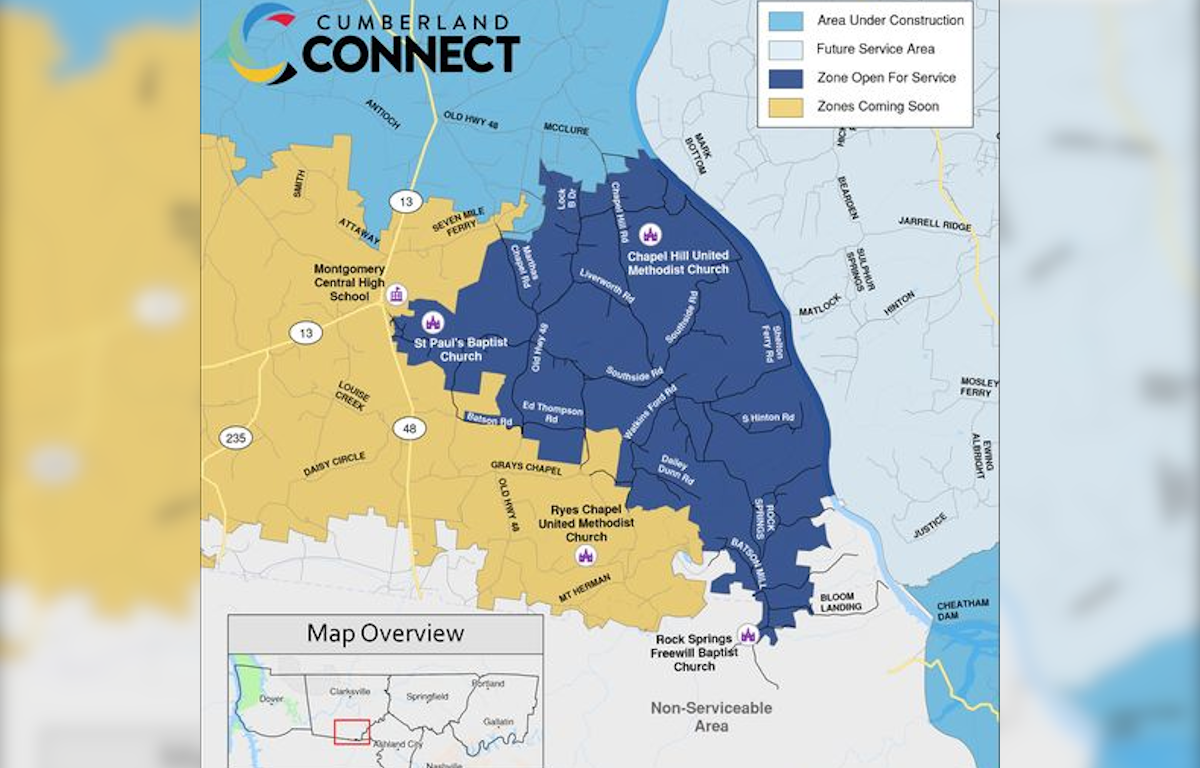 According to Cumberland Connect’s online expansion map, Cunningham and Oakridge are expected to receive service “soon,” with Palmyra and Woodlawn following in 2021.