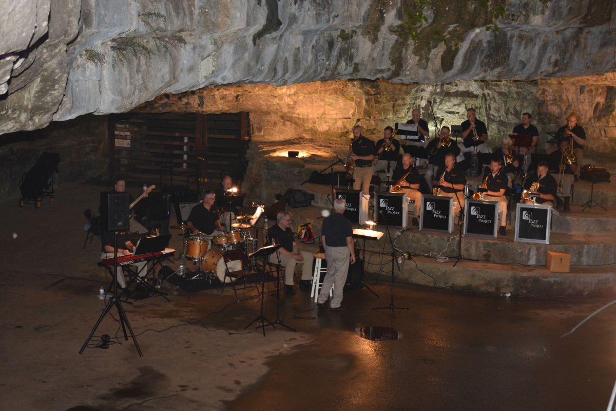 CLARKSVILLE, TN (CLARKSVILLE NOW) – More than 200 music fans of the Big Band era gathered at the mouth of Dunbar Cave for Coolin’ at the Cave Saturday evening, featuring the sounds of the Cumberland Winds Jazz Project.