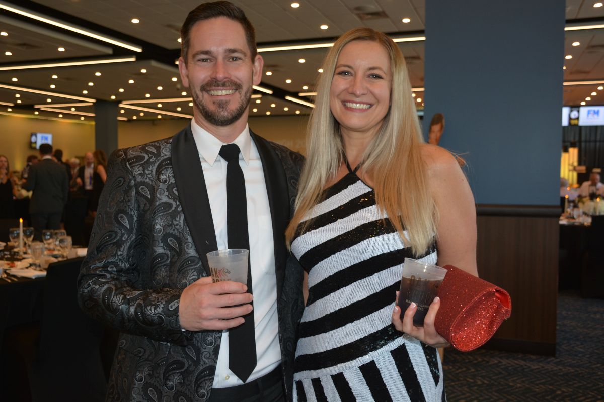 Amy Donnellan and Scott Donnellan. Customs House Museum & Cultural Center’s 38th Annual Flying High with a secret agent 007 James Bond theme titled Live and Let Fly was held at Oak Grove Racing, Gaming and Hotel on July 16, 2022. (Lee Erwin)