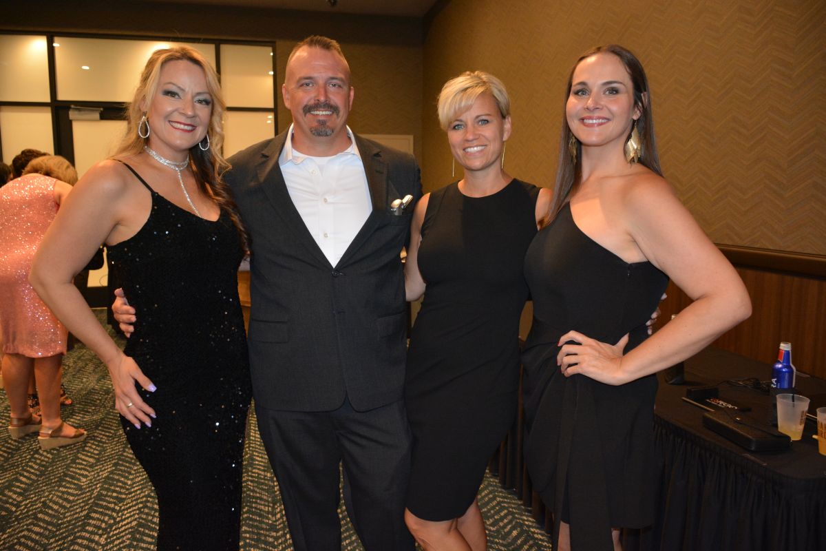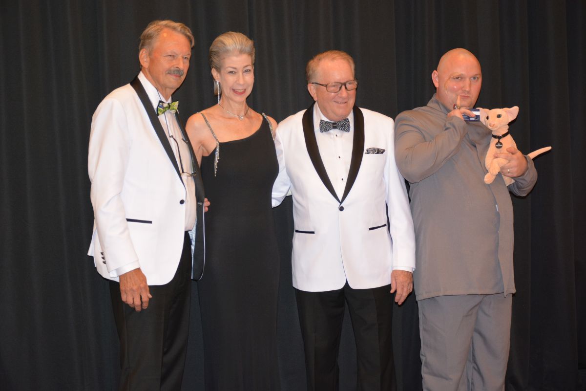 Christoph Hrdina, Kitty Harvill, Frank Lott and “Dr. Evil.” Customs House Museum & Cultural Center’s 38th Annual Flying High with a secret agent 007 James Bond theme titled Live and Let Fly was held at Oak Grove Racing, Gaming and Hotel on July 16, 2022. (Lee Erwin)