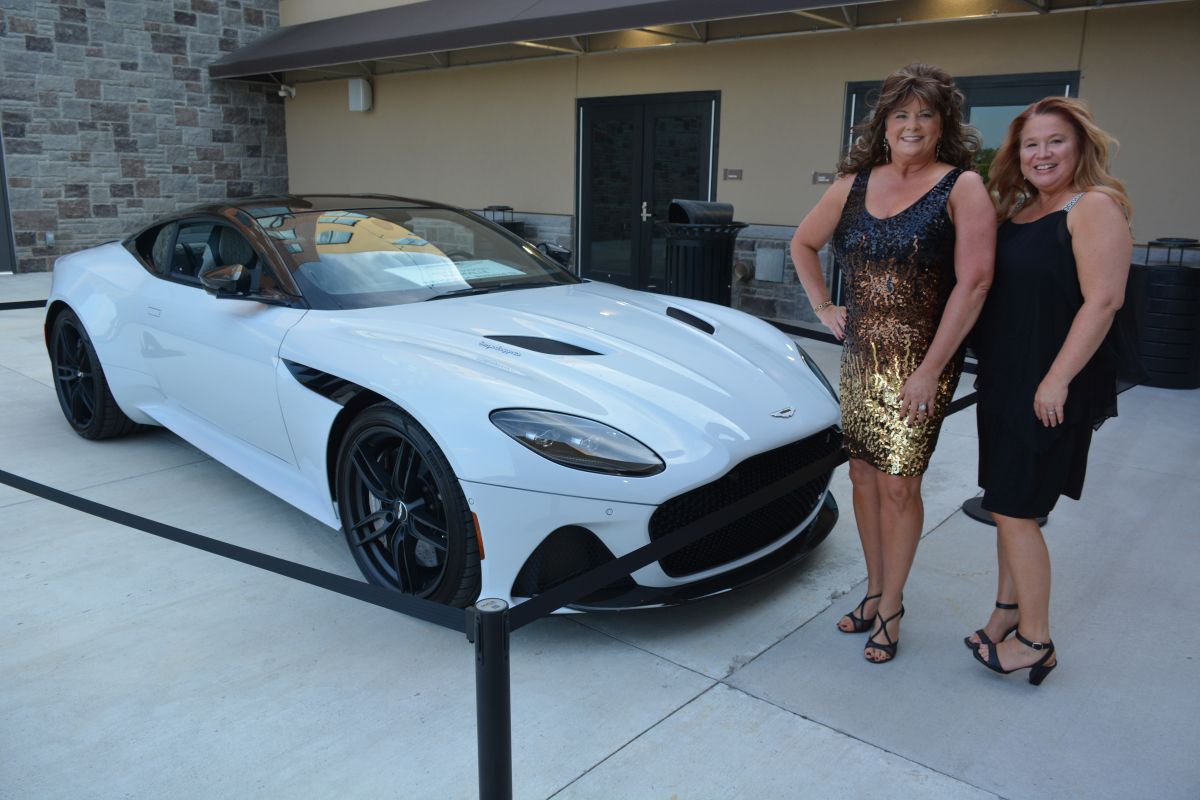 Guests pose with the Aston-Martin car on display at the Customs House Museum & Cultural Center’s 38th Annual Flying High with a secret agent 007 James Bond theme titled Live and Let Fly was held at Oak Grove Racing, Gaming and Hotel on July 16, 2022. (Lee Erwin)