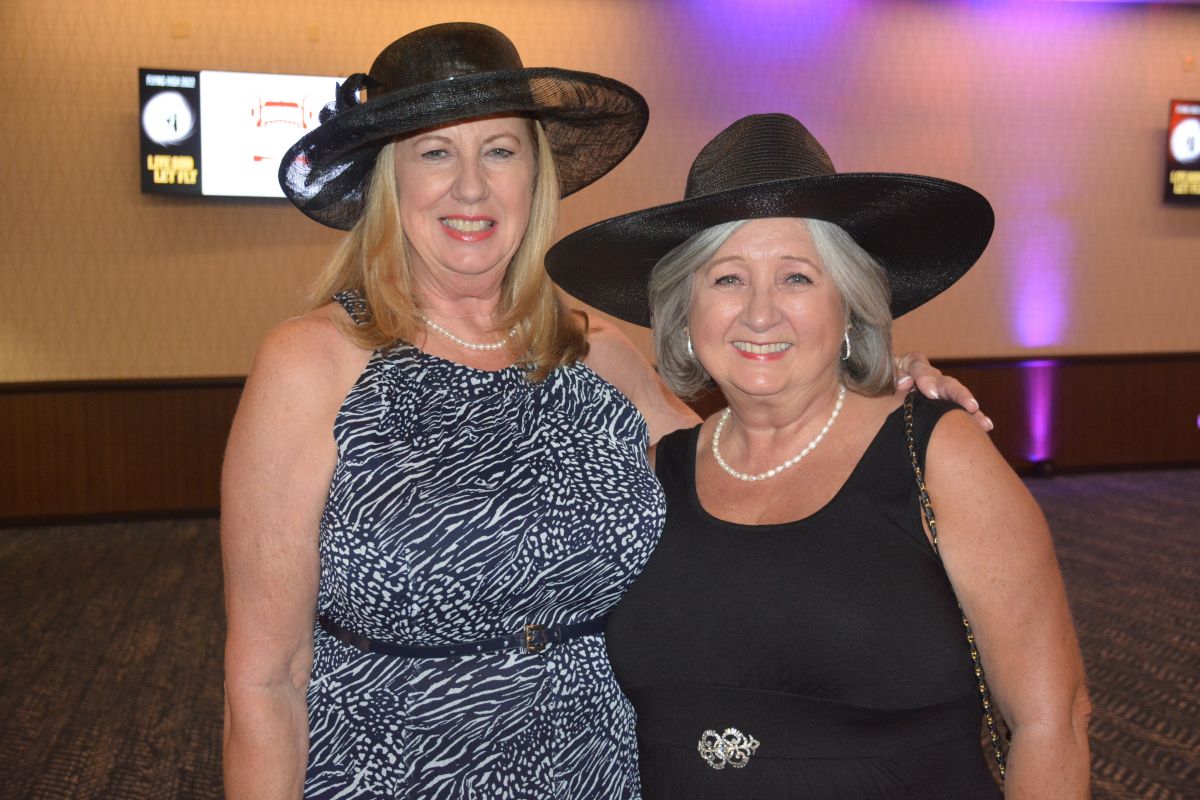 Jacqueline Crouch and Pamela Holz. Customs House Museum & Cultural Center’s 38th Annual Flying High with a secret agent 007 James Bond theme titled Live and Let Fly was held at Oak Grove Racing, Gaming and Hotel on July 16, 2022. (Lee Erwin)