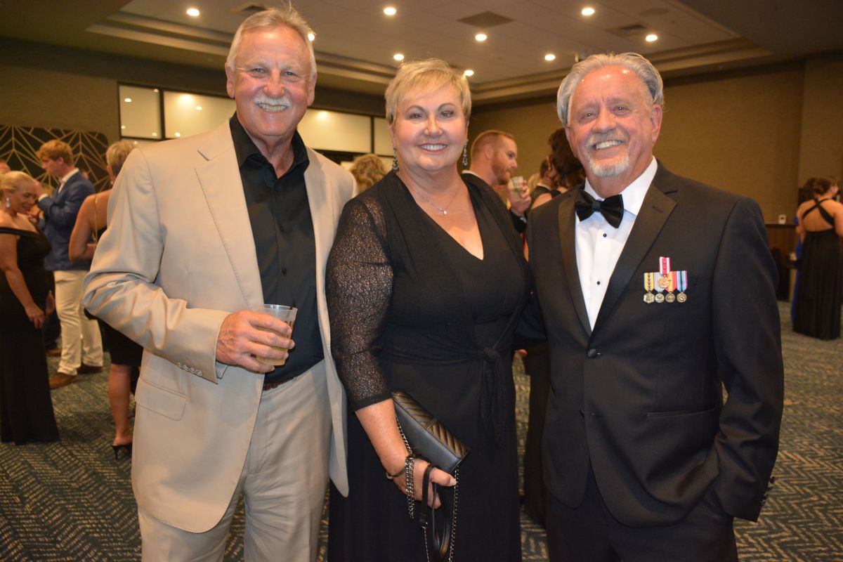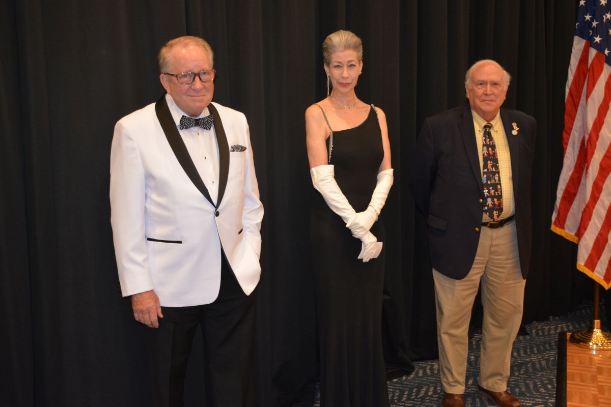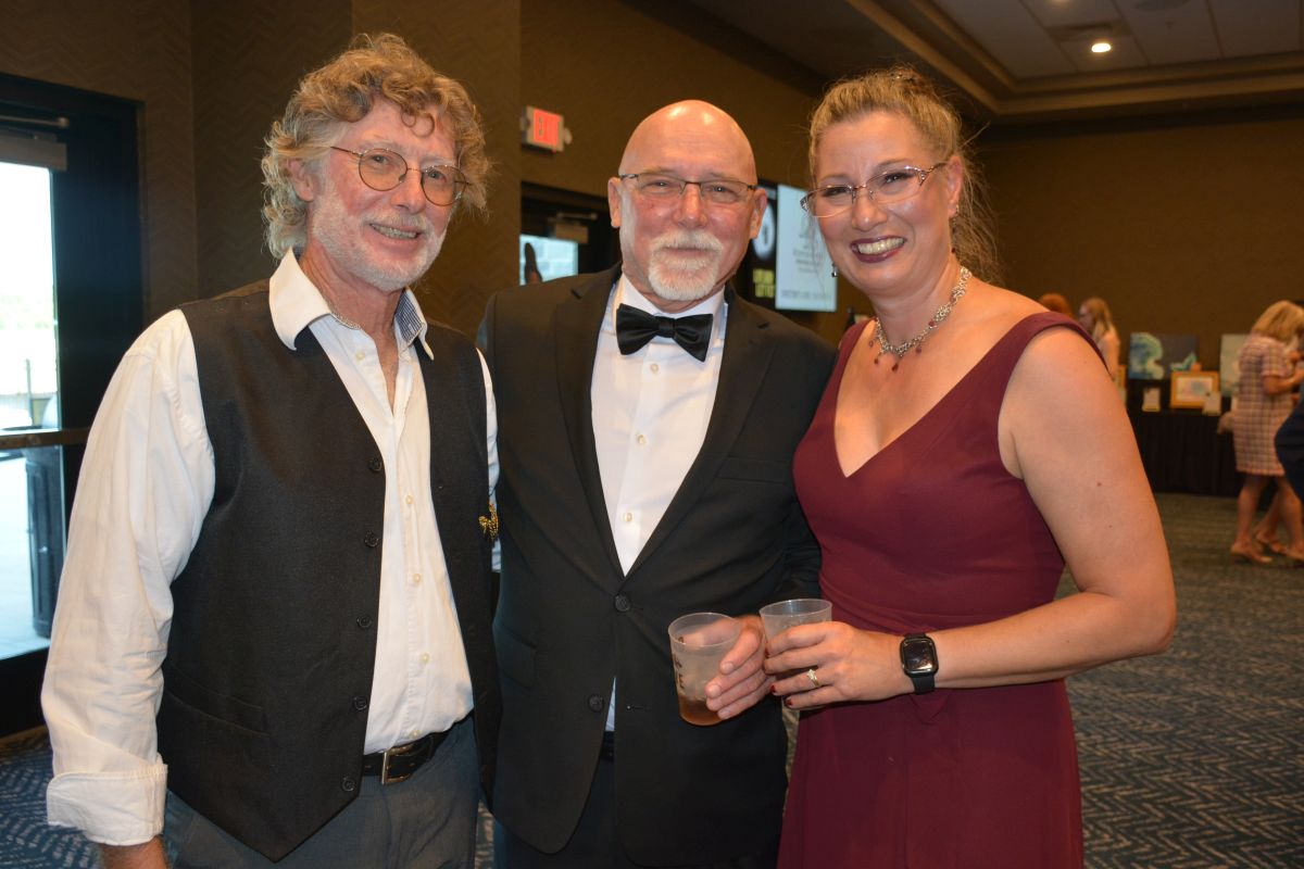Frank Lott, Kitty Harvill and Jim Mann. Customs House Museum & Cultural Center’s 38th Annual Flying High with a secret agent 007 James Bond theme titled Live and Let Fly was held at Oak Grove Racing, Gaming and Hotel on July 16, 2022. (Lee Erwin)