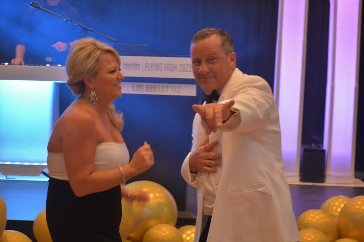 Kevin Kennedy with one of his team members. Customs House Museum & Cultural Center’s 38th Annual Flying High with a secret agent 007 James Bond theme titled Live and Let Fly was held at Oak Grove Racing, Gaming and Hotel on July 16, 2022. (Lee Erwin)