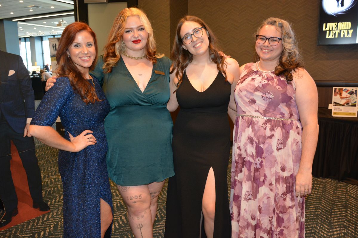 Linda Nichols, Mary Nell Wooten, Carmen Reagan and Ellen Kanervo. Customs House Museum & Cultural Center’s 38th Annual Flying High with a secret agent 007 James Bond theme titled Live and Let Fly was held at Oak Grove Racing, Gaming and Hotel on July 16, 2022. (Lee Erwin)