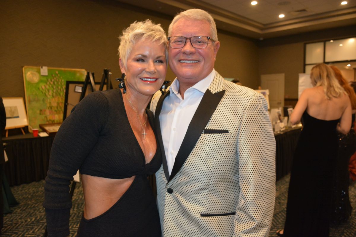 Joe Pitts and Cynthia Pitts. Clarksville Mayor Joe Pitts and Cynthia Pitts with their live auction art at the Customs House Museum & Cultural Center’s 38th Annual Flying High with a secret agent 007 James Bond theme titled Live and Let Fly was held at Oak Grove Racing, Gaming and Hotel on July 16, 2022. (Lee Erwin)