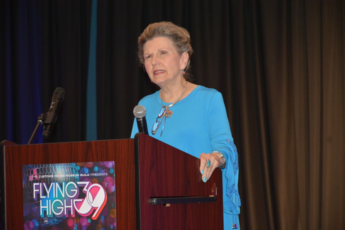 Gracey Award recipient Sue Lewis at the Customs House Museum & Cultural Center Flying High 39 fundraiser at Oak Grove Racing, Gaming & Hotel on Aug. 19, 2023. (Lee Erwin)