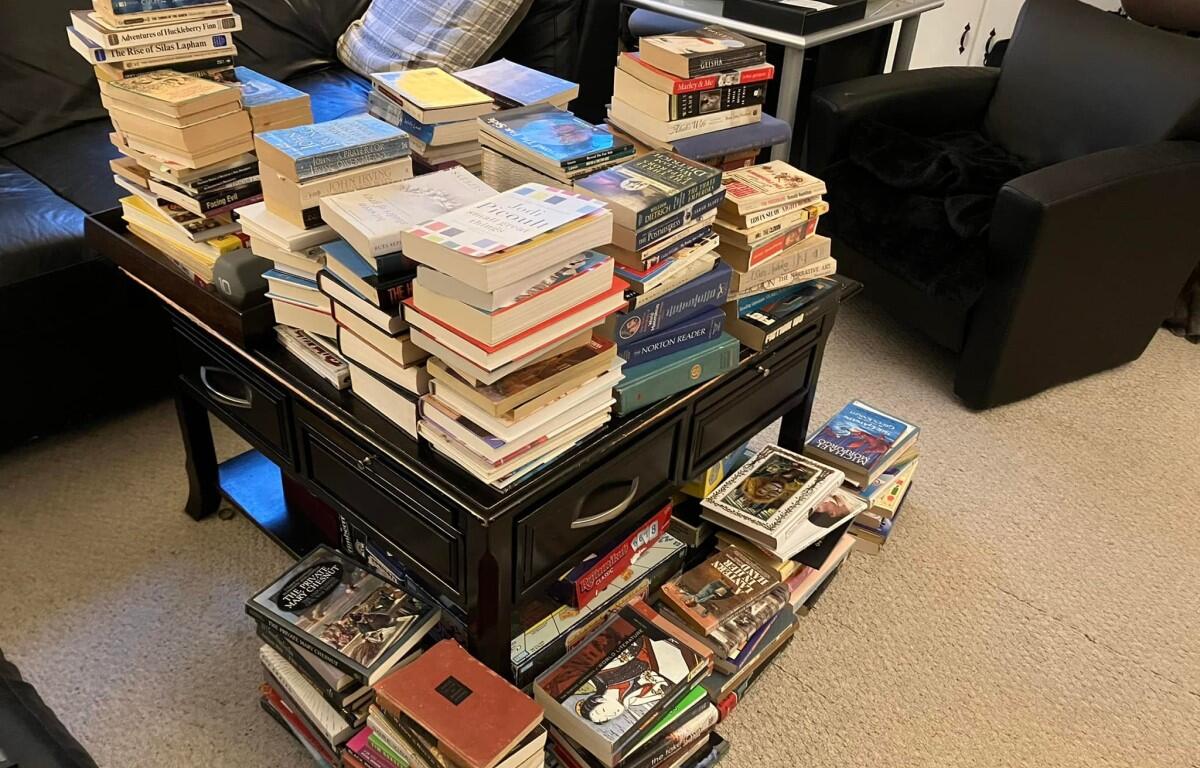Like many people who enjoy reading, we don’t easily let go of the books we’ve read. In some cases, we might want to read them again. (But how many more times can I read Fight Club?) In other cases, they’re like trophies of accomplishment. (Yes, I read the Complete Works of Shakespeare and bespeak my pride o’er those works by faith.) Some are still out there waiting to be read, like angry ghosts howling for attention. (Ulysses, Catch 22, The Fifth Circle – I know, I hear you, and I’m not gonna do it!)