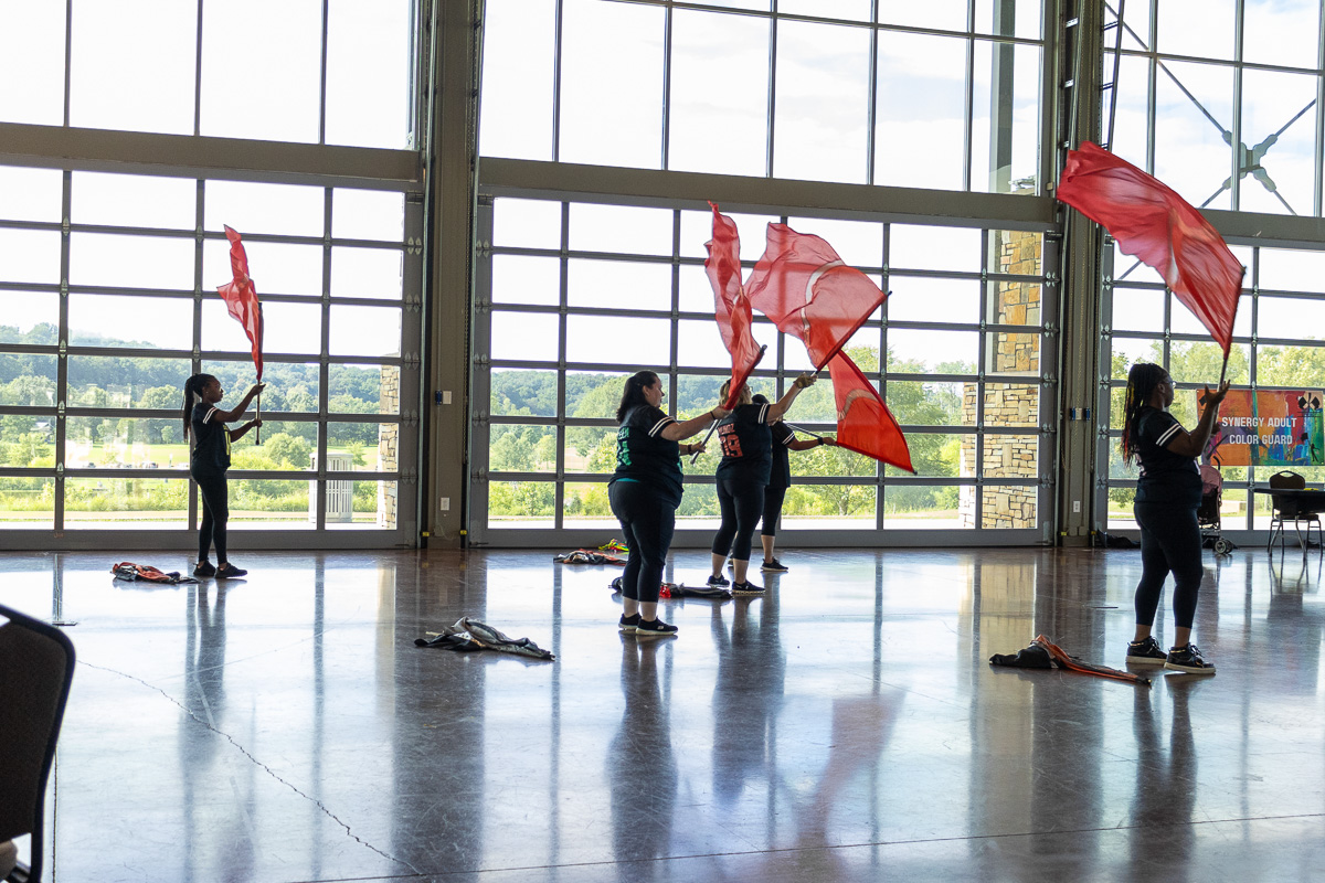 Synergy Adult Color Guard at Dance in the Park at Wilma Roudolph Event Center on August 12, 2023. (Wesley Irvin)