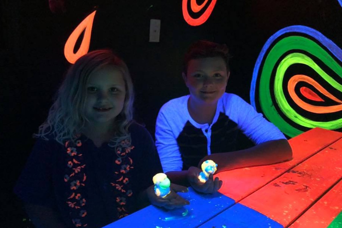 - Glow-in-Dark Paint Room: Pick your medium and take your time. Our glow-in-the-dark paints are second to none. Sunlight or even standard lighting energizes the paint and stays bright for hours. You can use our plaster crafts, or a large canvas, or whatever works for you. Your painting will look amazing in in the dark and in the light. Ask about our new paint kits for schools, day care centers, churches and group organizations. We deliver for free to Clarksville and surrounding areas.