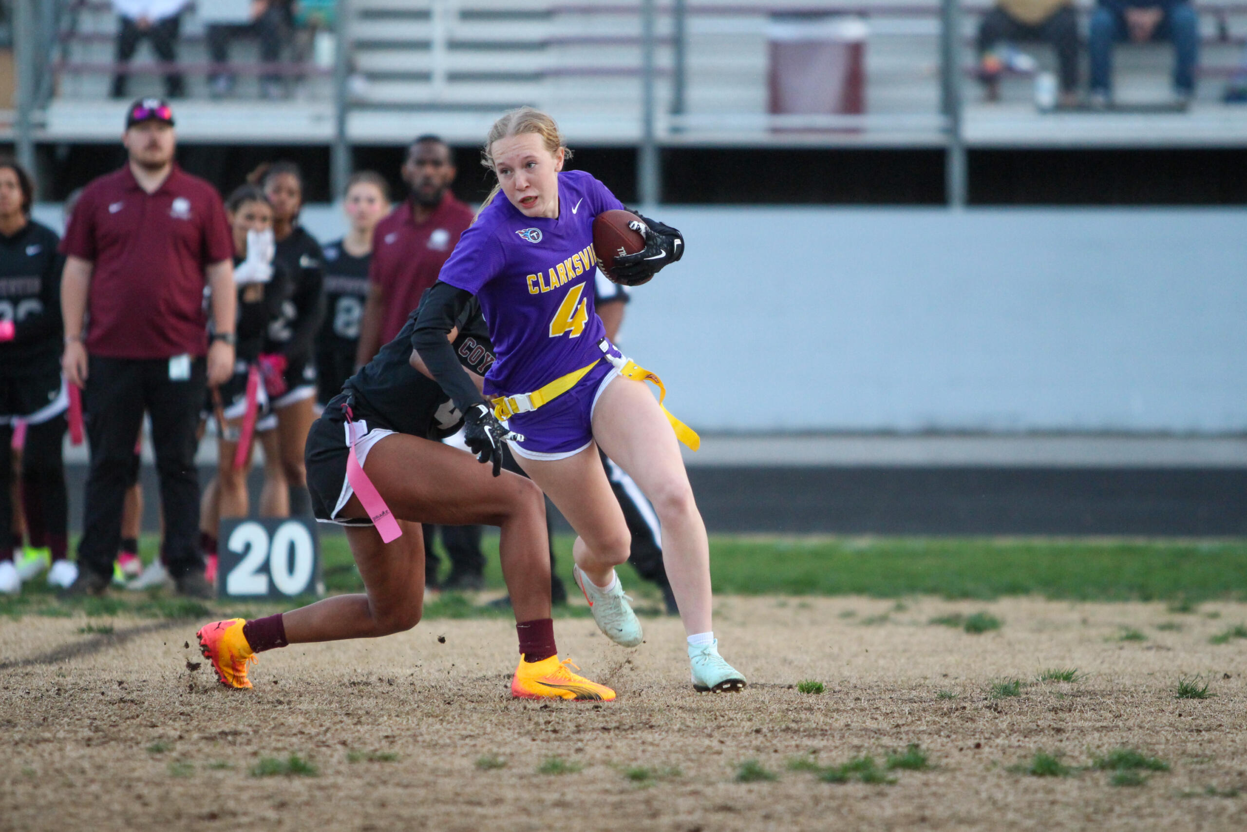 CLARKSVILLE, TN (CLARKSVILLE NOW) – The Clarksville High Wildcats flag football team traveled to West Creek for an inner-city matchup on Wednesday. The game was a stalemate for a while, but West Creek got on the board first, and two crucial interceptions sealed the deal for the Coyotes, earning them an 18-6 win.