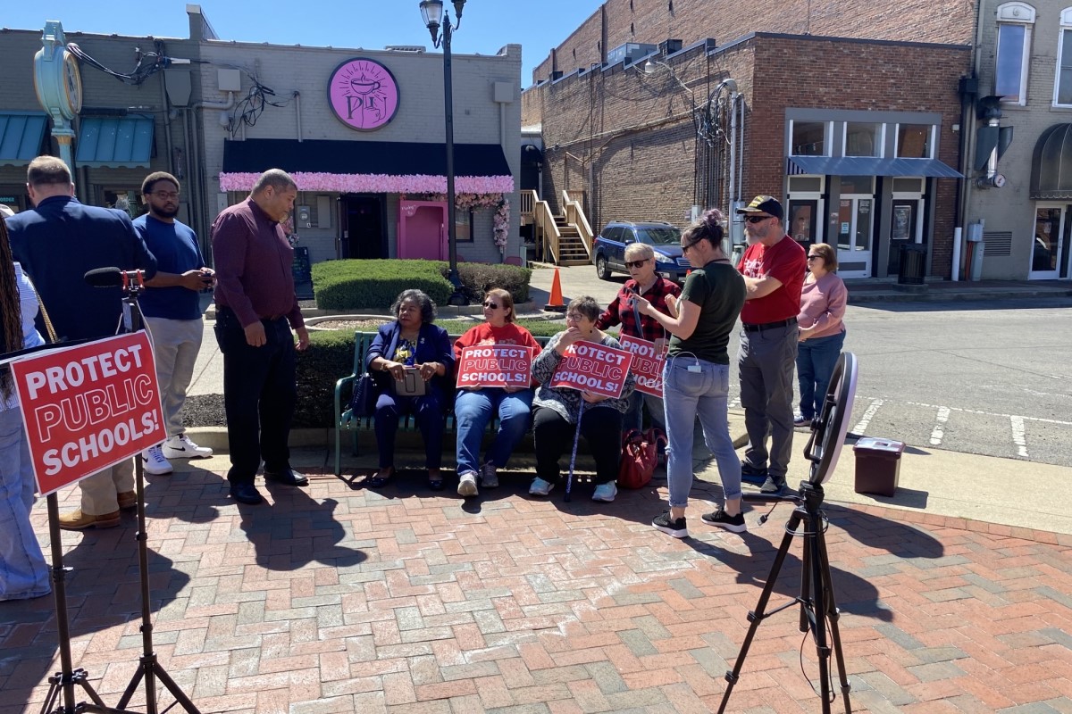 CLARKSVILLE, TN (CLARKSVILLE NOW) – In response to the ongoing push for Tennessee Gov. Bill Lee’s Education Freedom Scholarship Act – essentially a school voucher program – the Montgomery County Democratic Party gathered downtown to hold a rally urging lawmakers to vote to keep taxpayer dollars in public schools.