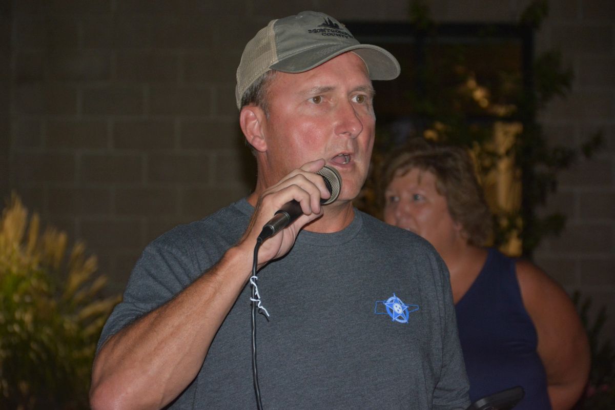 Montgomery County Sheriff talks to the runners at the 7th Annual “Deputy Bubba Johnson Memorial Road Race” with the Montgomery County Sheriff’s Office on Saturday, August 28 2021 (Lee Erwin).