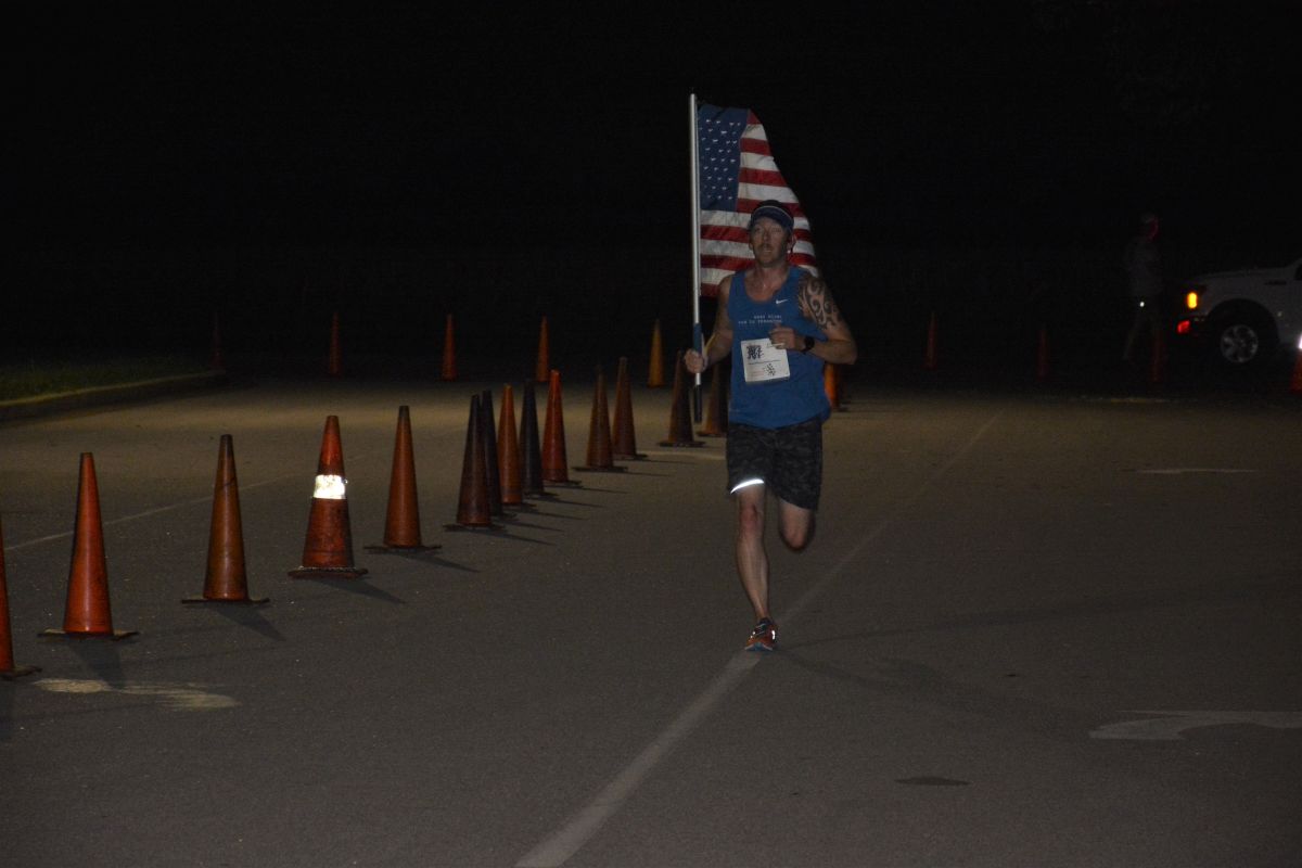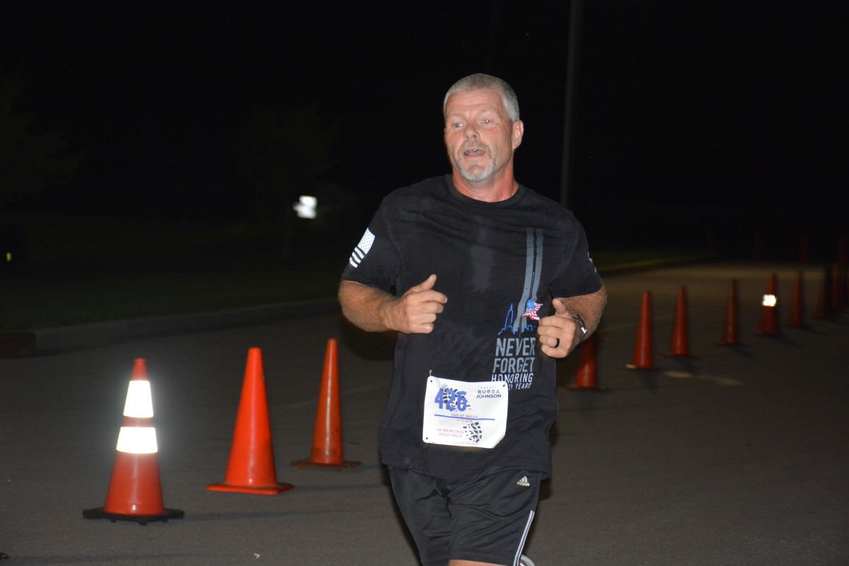 A runner heads to the finish line at the 7th Annual “Deputy Bubba Johnson Memorial Road Race” with the Montgomery County Sheriff’s Office on Saturday, August 28 2021 (Lee Erwin).