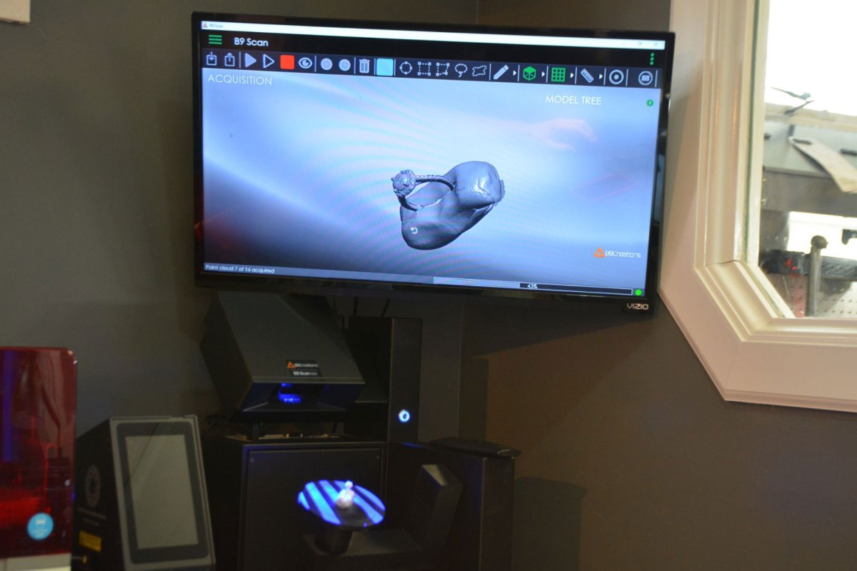 Once the drawing is approved, Clarksville Jewelers uses a 3D printer to create a model of the ring. That model can be tried on so the client see what the ring will look like after completion.