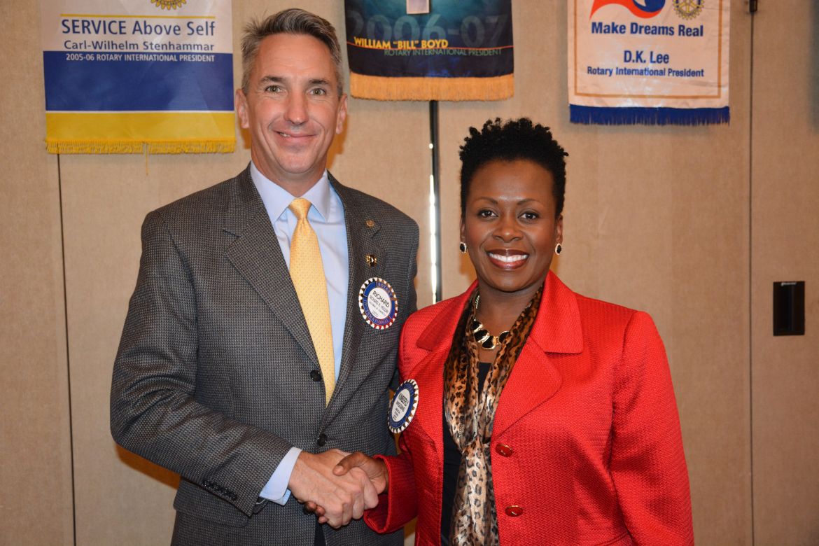 Also at the Clarksville Rotary meeting, Rich Holladay with Waterdogs Scuba & Safety, was inducted by Kimberly Wiggins as new club member.