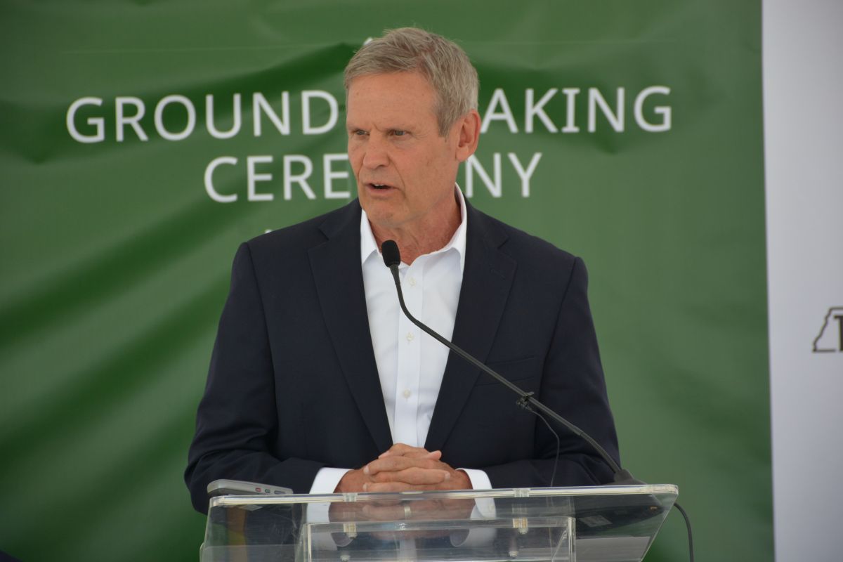 Tennessee Governor Bill Lee speaking the Dongwha Electrolyte groundbreaking ceremony on June 6, 2022. (Lee Erwin)