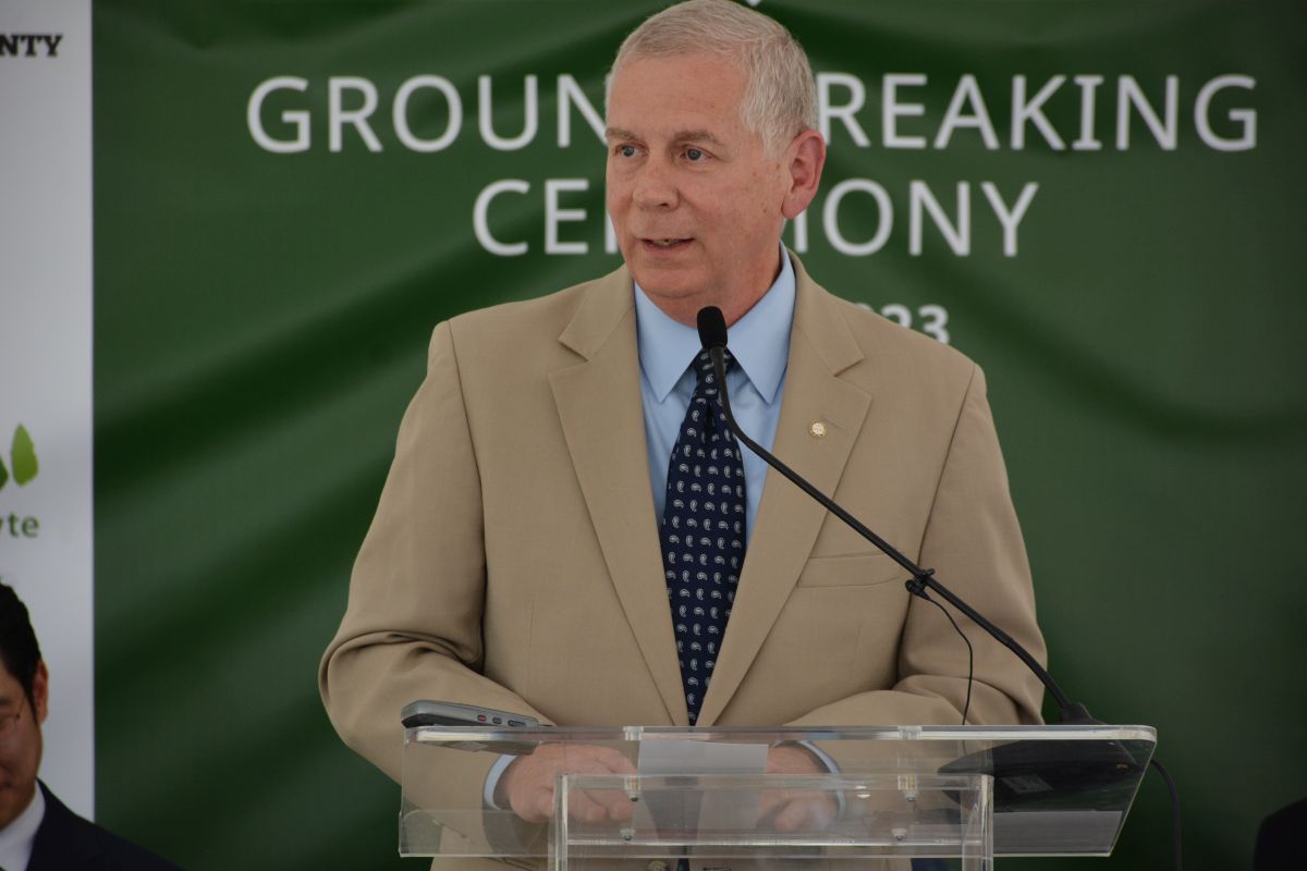 Montgomery County Mayor Wes Golden speaking at the Dongwha Electrolyte groundbreaking ceremony on June 6, 2022. (Lee Erwin)