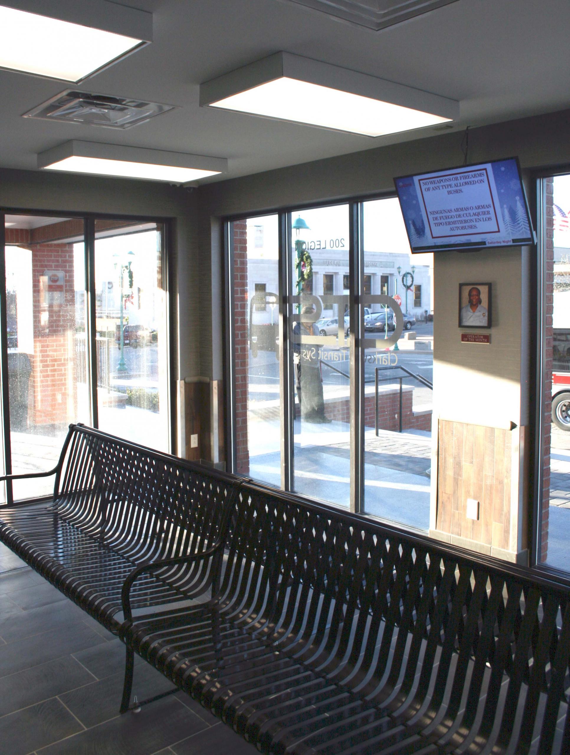 The Transit Center project improved the look, comfort and functionality of the building and surrounding area. The work included a new roof, and new paint, wallpaper and flooring inside the building. Outside, the bus terminal got new paving, sidewalk repairs, additional ramps and seating, and new landscaping.