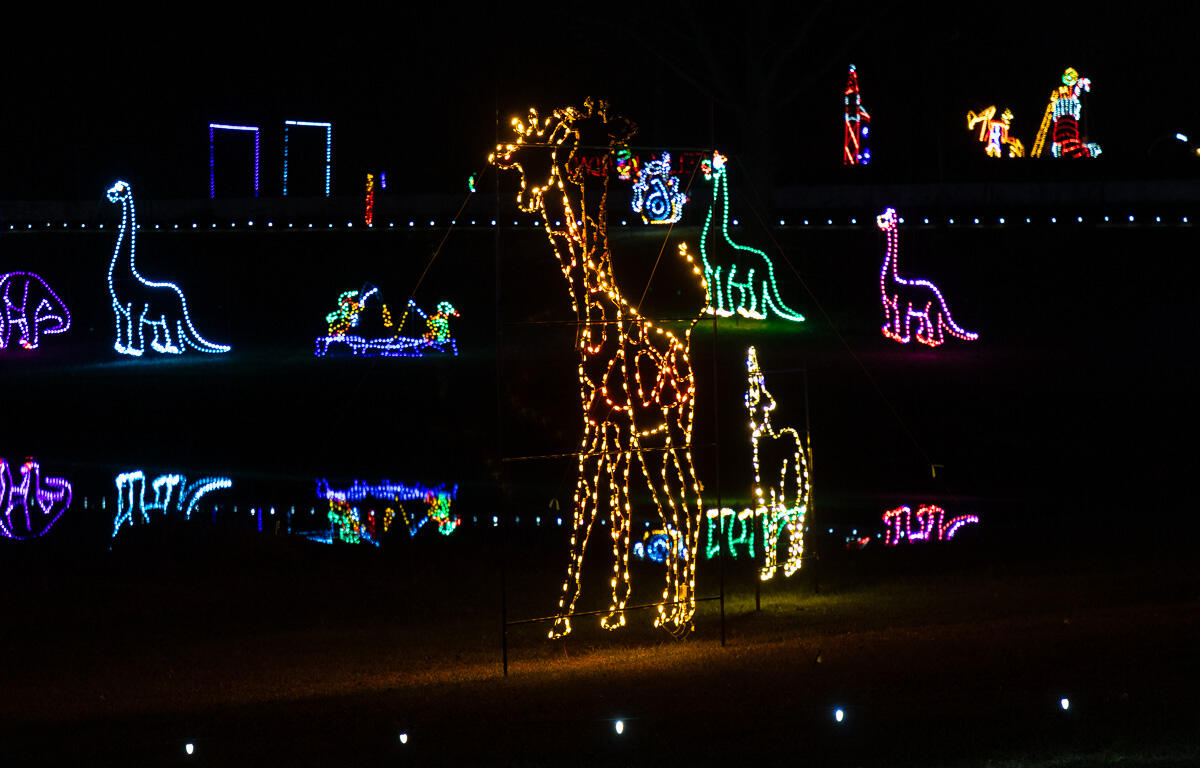 Visitors can drive through the display, and many do so bundled up in blankets with hot chocolate, to see everything from candy canes and ice skaters to giraffes and dragons.