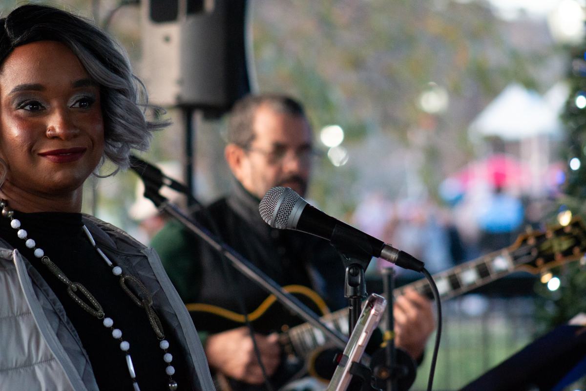 The Full Circle Smooth Jazz Band entertains the arriving crowds to McGregor Park for the Grand Opening of Christmas on the Cumberland on Nov. 23, 2024. (Daniela Thomas/APSU)