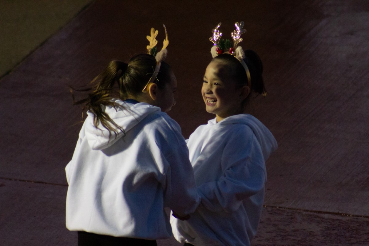 CAST & Crowns students warm up as the sun sets and the crowd gathers to attend the Grand Opening of the Christmas on the Cumberland at McGregor Park on Nov. 23, 2024. (Daniela Thomas/APSU)