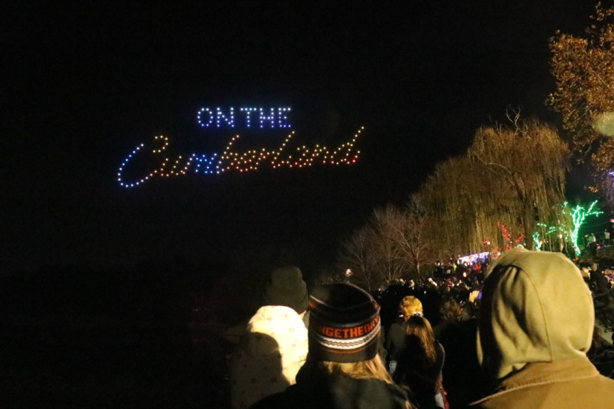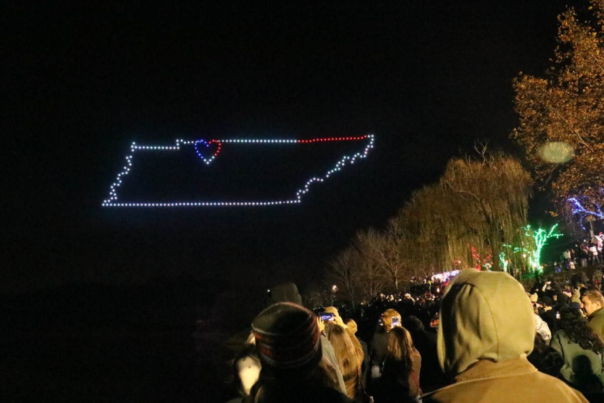 The city’s first-ever drone show at Christmas on the Cumberland on Nov. 23, 2024. (Hugh Wheeler/APSU)