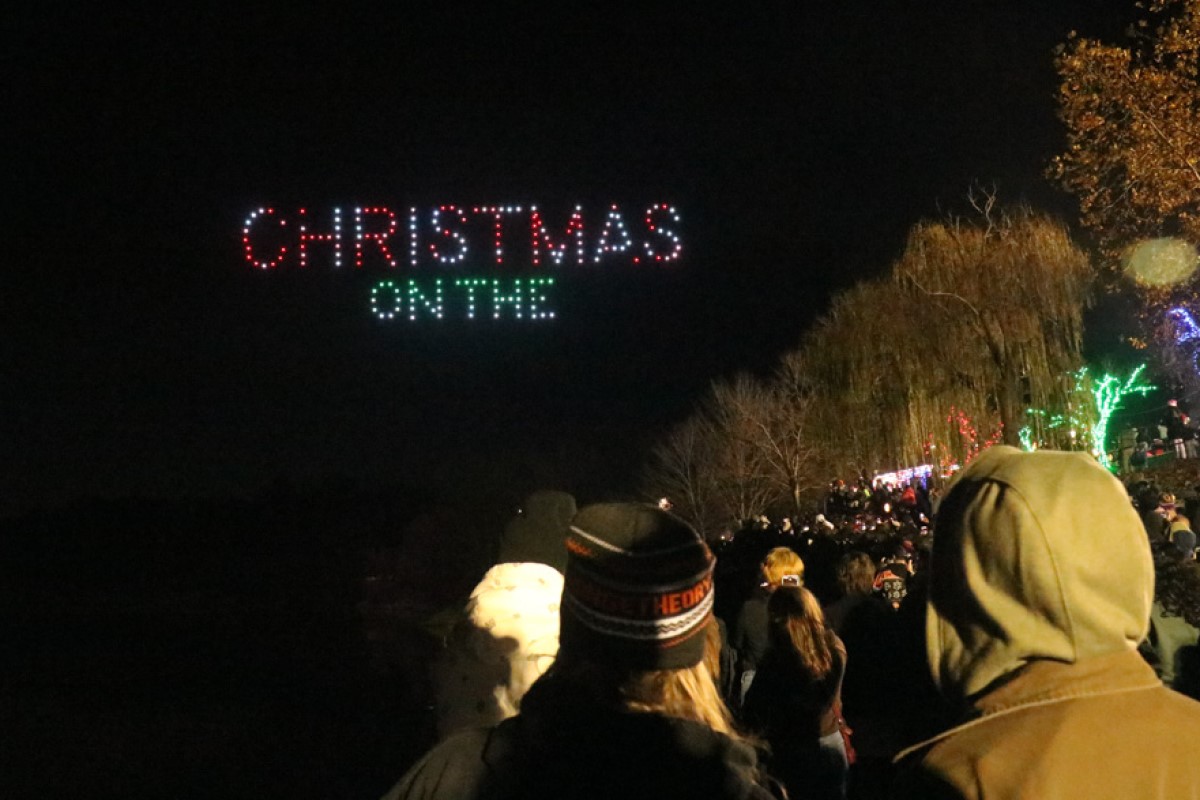 The city’s first-ever drone show at Christmas on the Cumberland on Nov. 23, 2024. (Daniela Thomas/APSU)