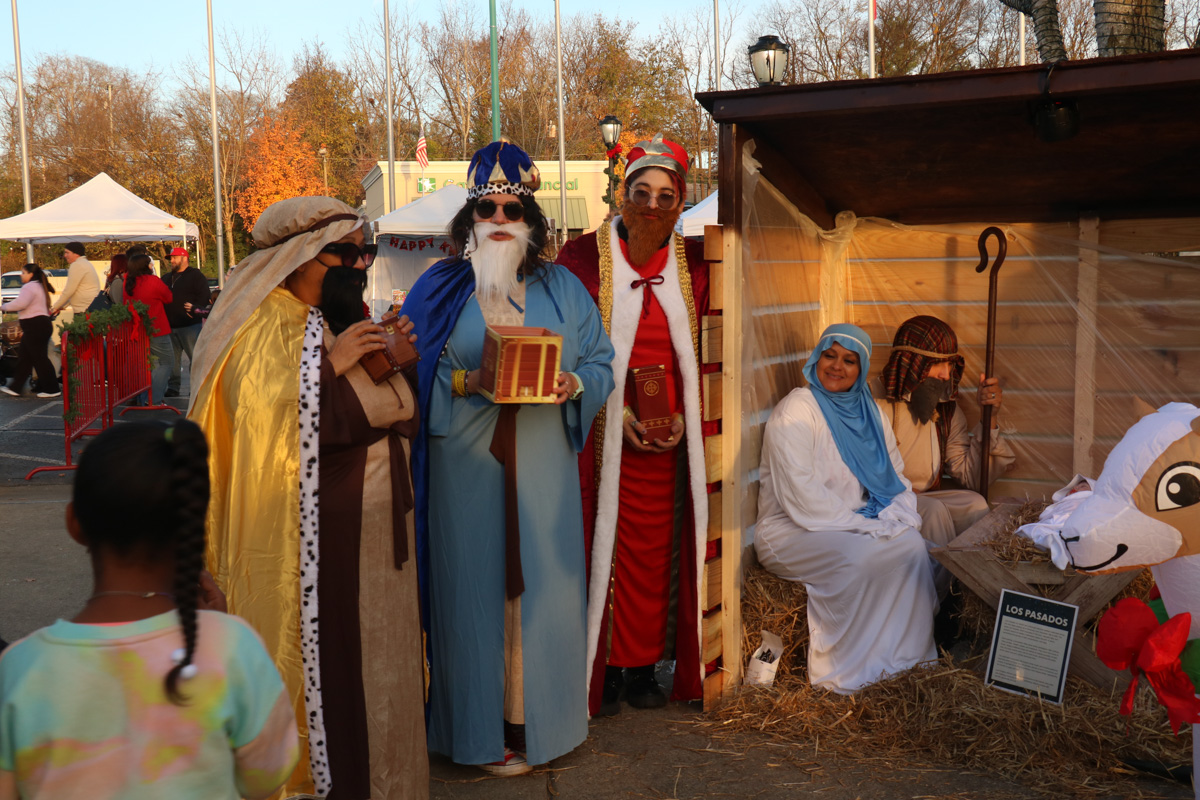 Patrons dress as a Nativity display for a booth at the Holiday Market during the Christmas on the Cumberland Grand Opening at McGregor Park in Clarksville, TN on November 23, 2024. (Hugh Wheeler/Austin Peay State University)