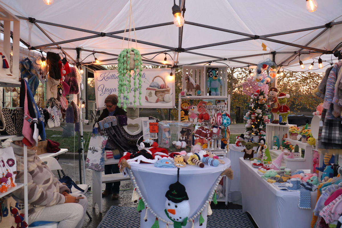Knitting by Pili sells knitted items at the Holiday Market at the Christmas on the Cumberland Grand Opening at McGregor Park in Clarksville, TN on November 23, 2024. (Hugh Wheeler/Austin Peay State University)