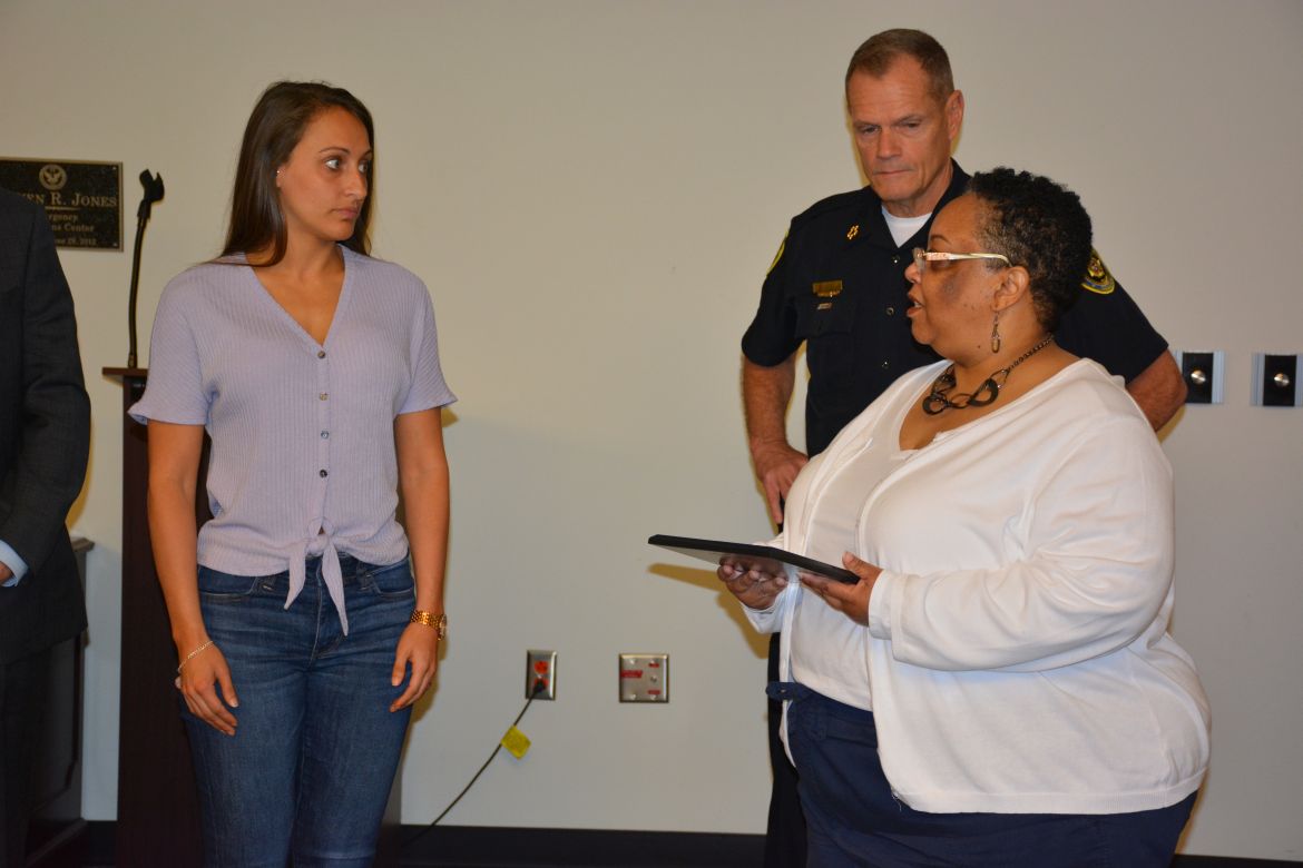Along with the proclamation the Montgomery County E911 Center recognized Benjamin Tribbett as co-worker of the year and Ashley Arrington as E911 employee of the year.