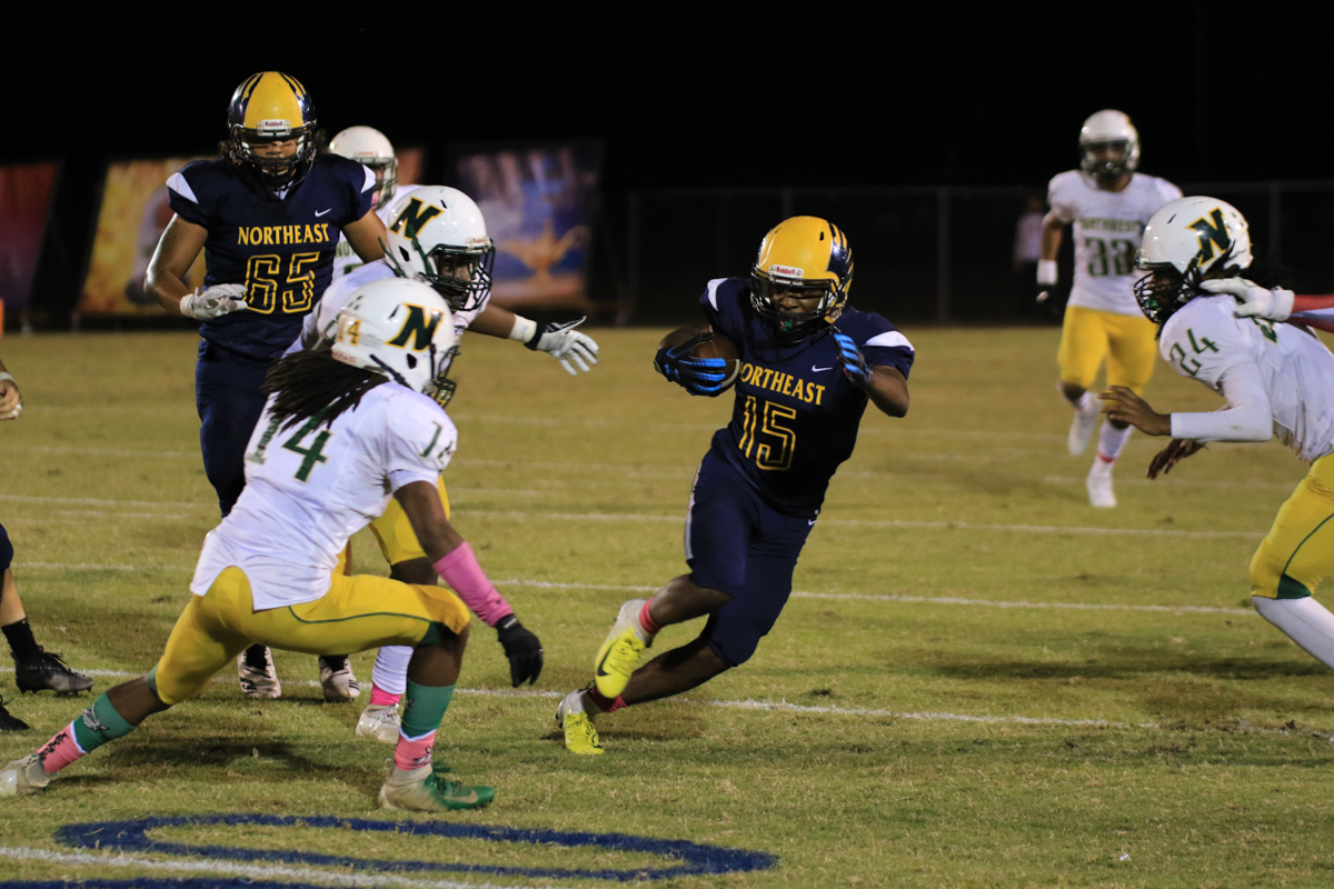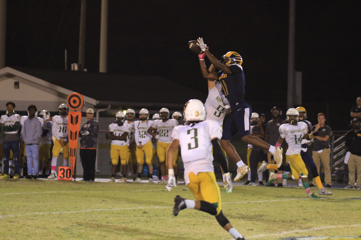 Northeast’s defense would make adjustments and shut out the Viking offense the rest of the way out, as senior Malik Rumble came away with a key interception midway through the fourth quarter to stall Northwest’s final shot at a comeback.
