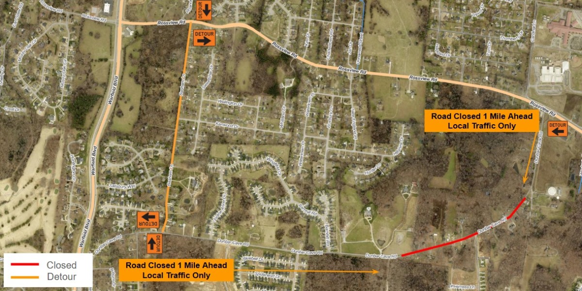 In order to properly tie into the new alignment, a portion of Dunbar Cave Road will be completely closed to traffic, with the remainder only open to local traffic, according to the City of Clarksville. All non-local traffic is asked to continue on Rossview Road. Residents who live within the closed portion of Dunbar Cave Road will still maintain access to their homes.