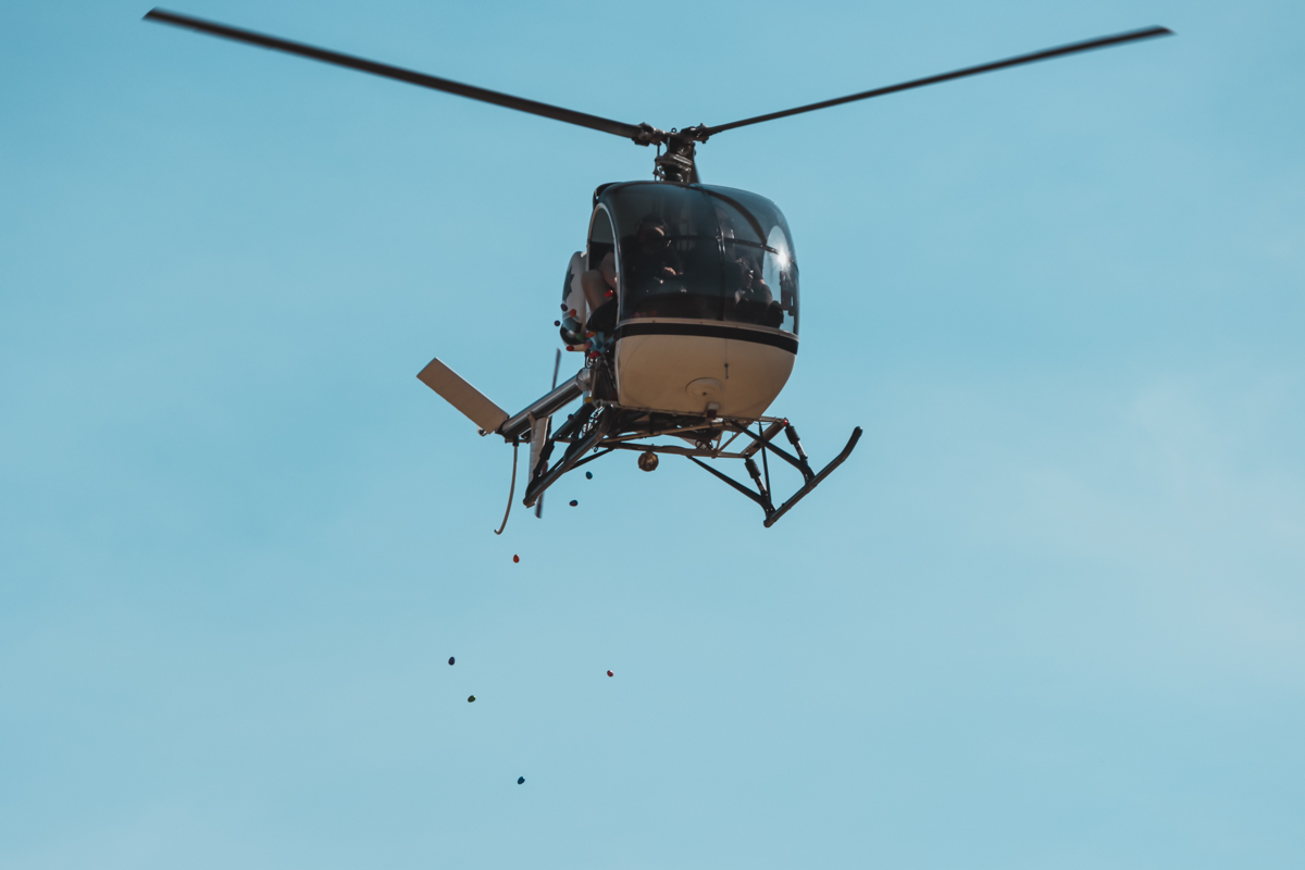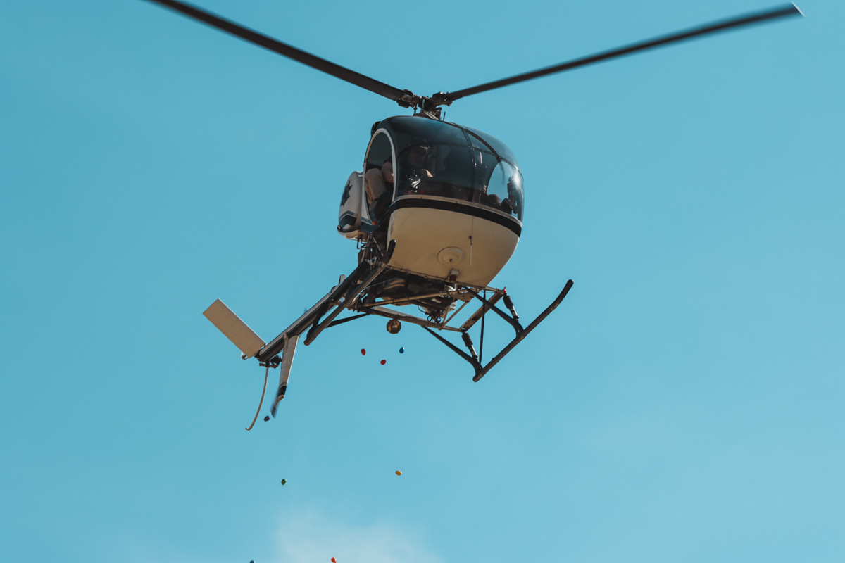 The eggs were scattered and the kids were on the hunt Saturday morning at Clarksville Country Club, where helicopters helped out with the egg delivery.