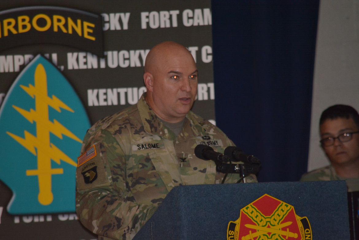 During the retirement ceremony Commanding General of the 101st Airborne Division (Air Assault), Major General Andrew Poppas talked about Salome’s service at Fort Campbell. “Rob Salome is the face of Fort Campbell, he’s earned it and he deserves our respect. So we look at the culmination of his career and everything that he’s accomplished. I’m glad he’s retiring here at Fort Campbell,” said Poppas.