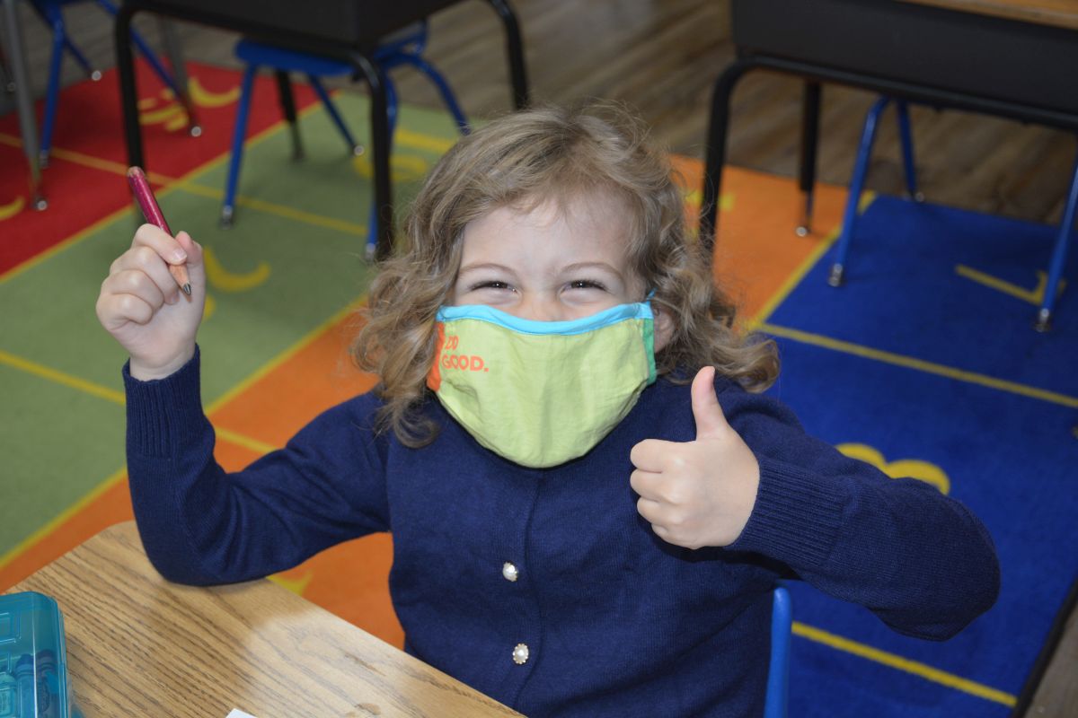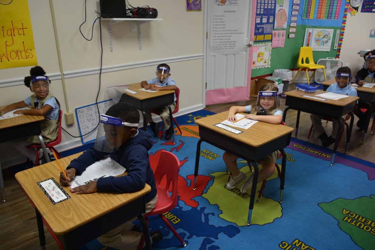The school has all of the safety protocols in place including temperature checks before entering the building, the wearing of masks and shields, available hand sanitizer, and practicing social distancing.