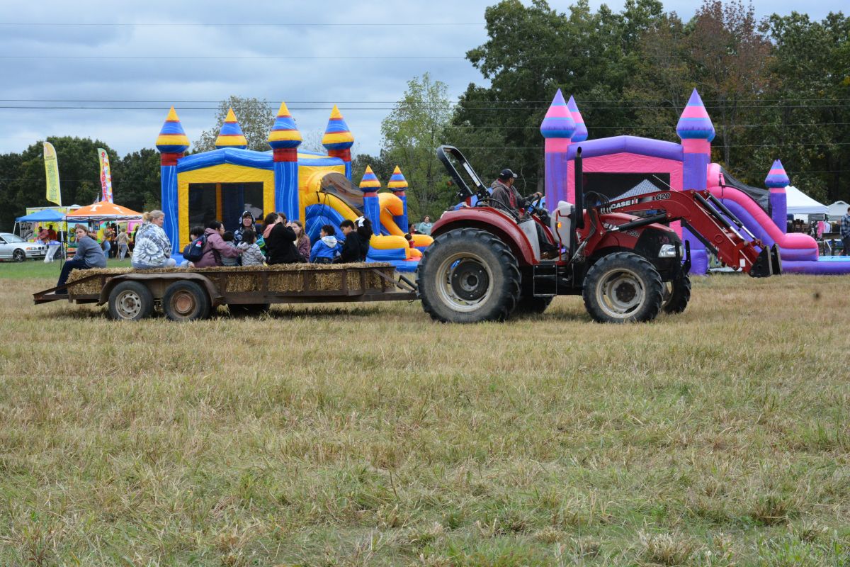 The event features a 4 1/2-acre jack-o’-lantern corn maze, hayrides, inflatables, a pumpkin patch with free pumpkins, more than two dozen vendors, and activities for the whole family. Admission is free, with wristbands and tickets sold for specific activities.