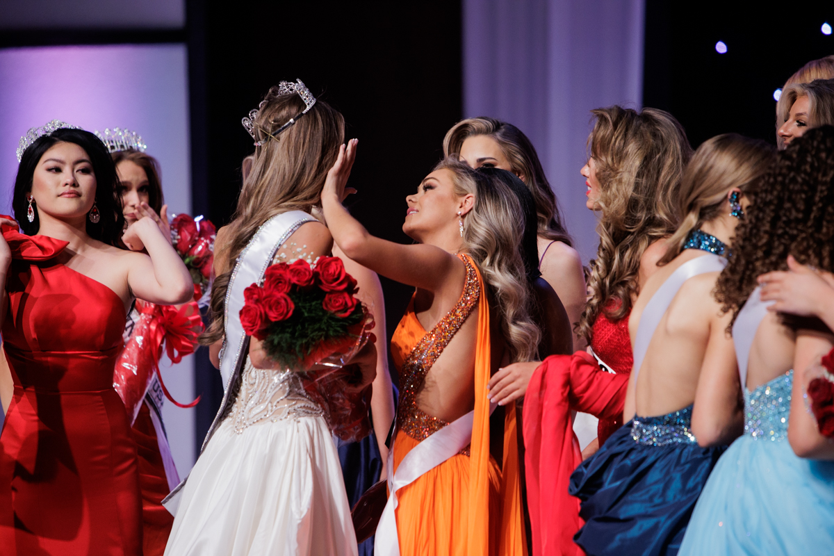 McKinley Farese Miss TN Teen USA 2022, is congratulated by the other finalists after being crowned and taking her first walk as Miss TN Teen USA at the Miss Tennessee Teen USA Pageant on March 12, 2022. (Alicia Archuleta)