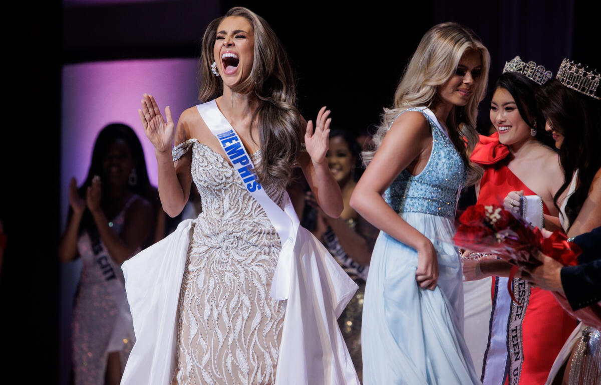 Miss Memphis McKinley Farese reacts as she realizes she was just named Miss TN Teen USA at the Miss Tennessee Teen USA Pageant on March 12, 2022. (Alicia Archuleta)