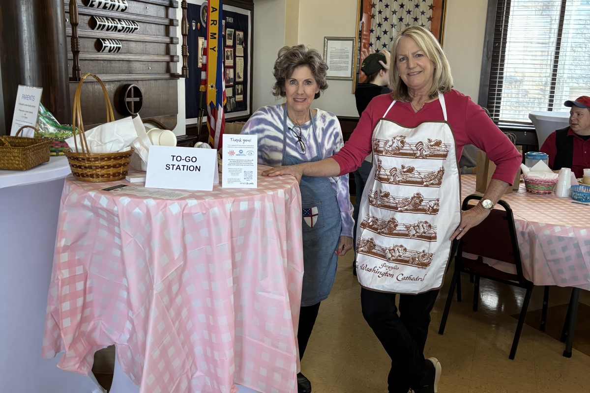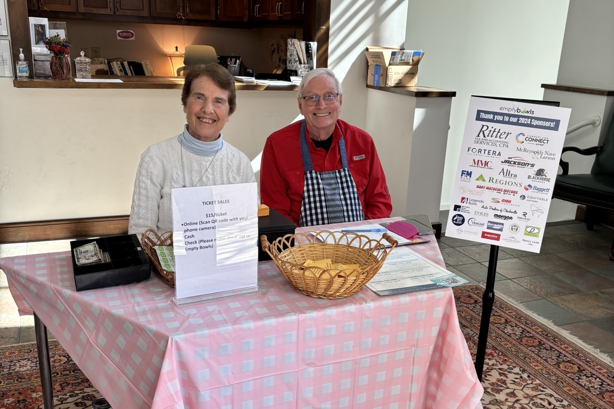 Jan Hodgson, left, and Larry Faust at the Empty Bowls lunch at Trinity Episcopal Church on Feb. 20, 2024. (Erin Miskimins)