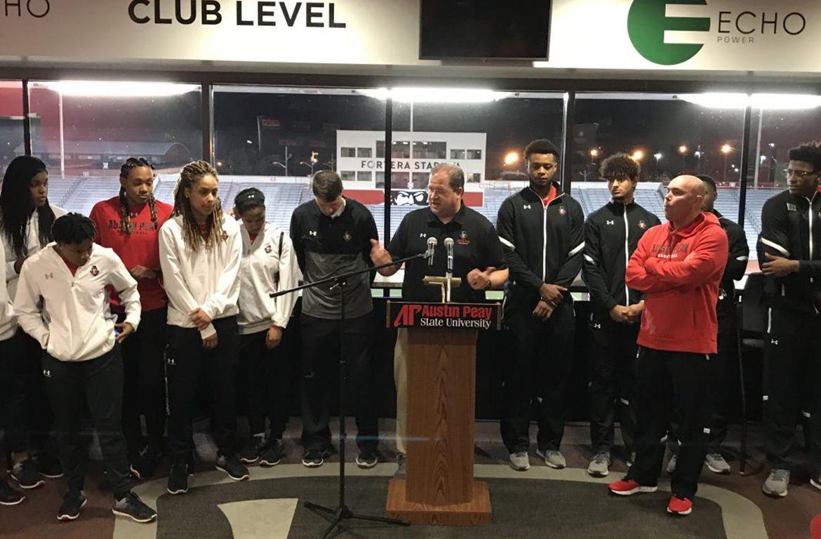 The reception is free and open to the public, and will be from 6 to 7:30 p.m. in the ECHO Power Club Level at Fortera Stadium. The event will feature APSU women’s and men’s teams, coaching staffs, and spirit squads. Appetizers will be served.